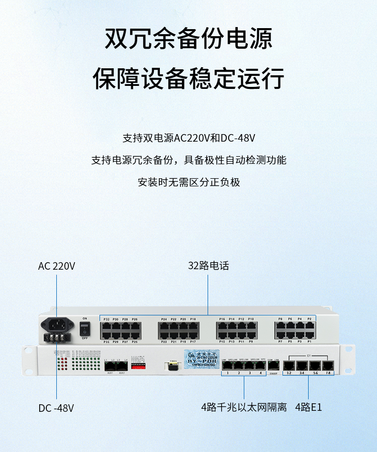 博扬 综合业务电话光端机 4路E1+32路电话+4路千兆以太网隔离 单纤60km 机架式 1对价 白色