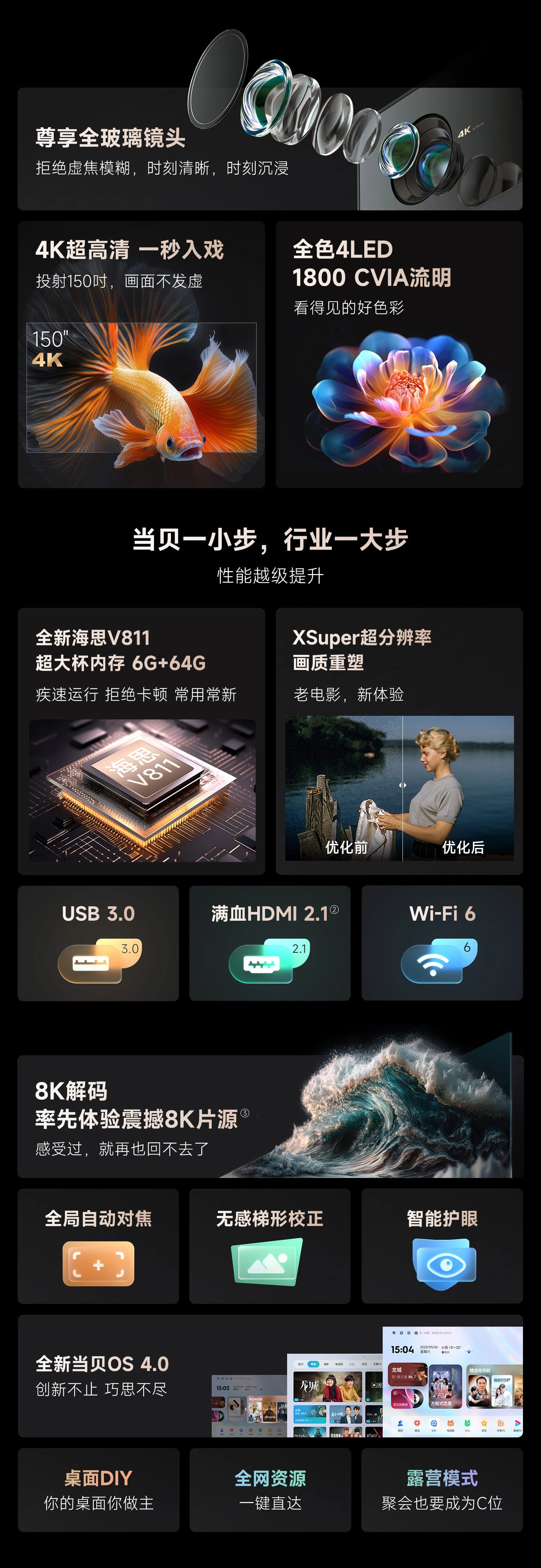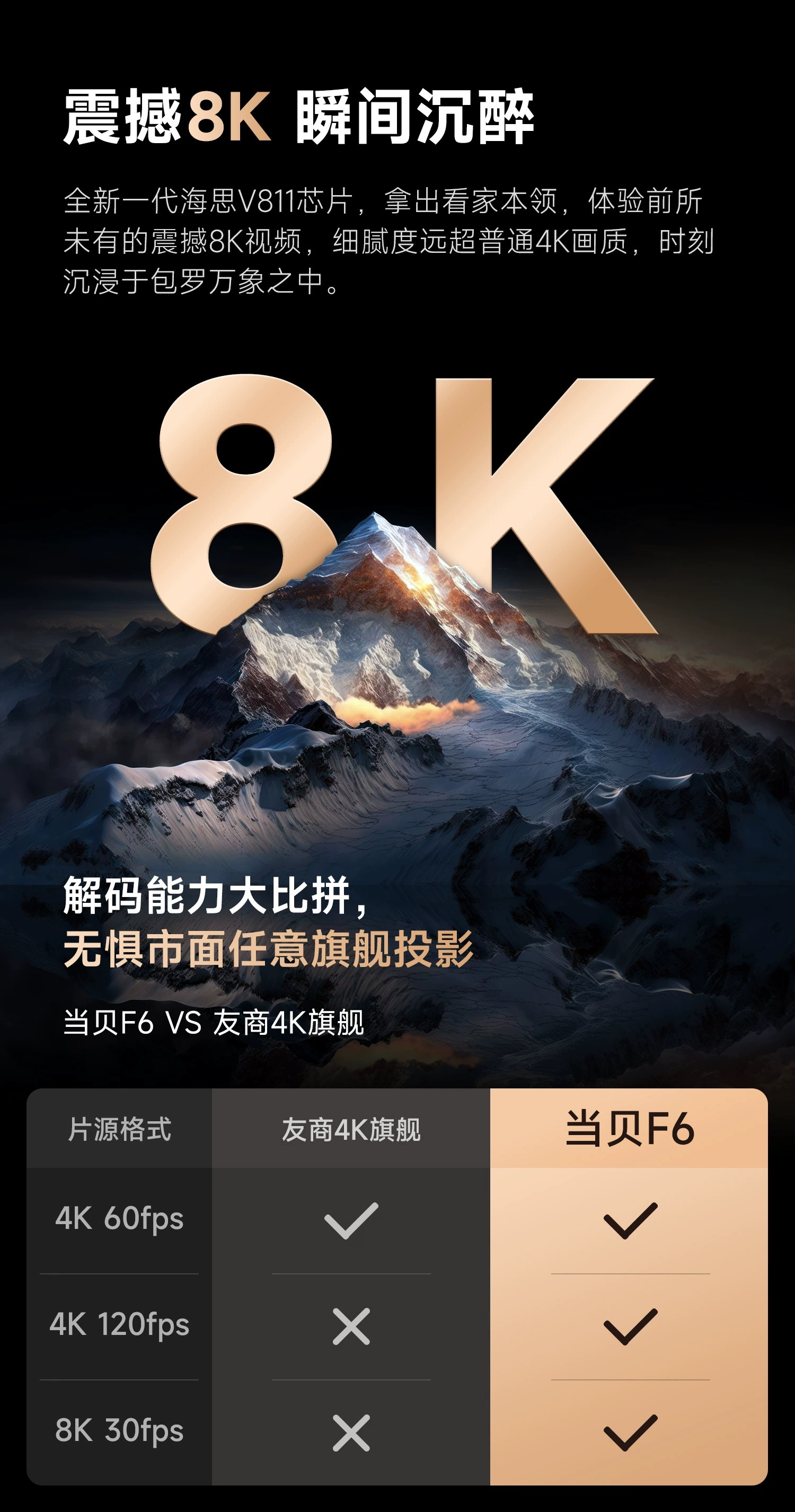 当贝F6 投影仪家用 4K超清 游戏投影 家庭影院(6G 8K解码 全玻璃镜头 全新海思V811 枫叶色