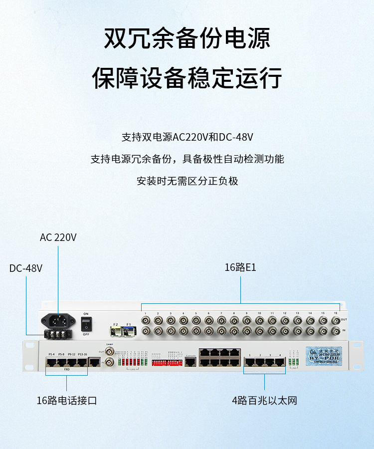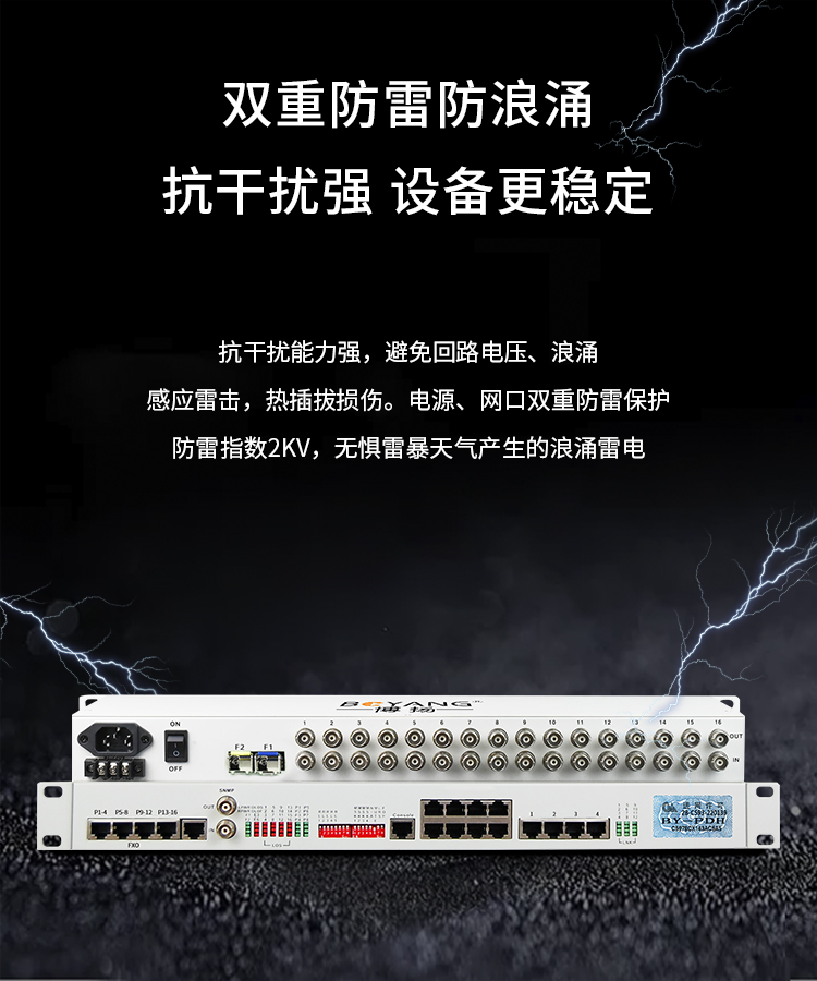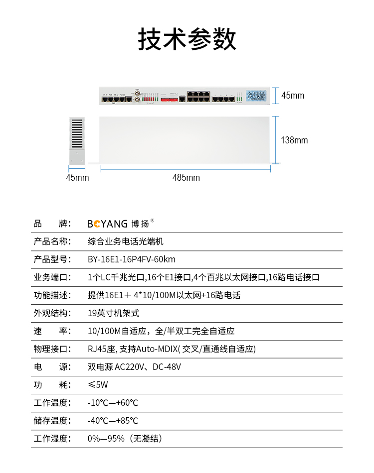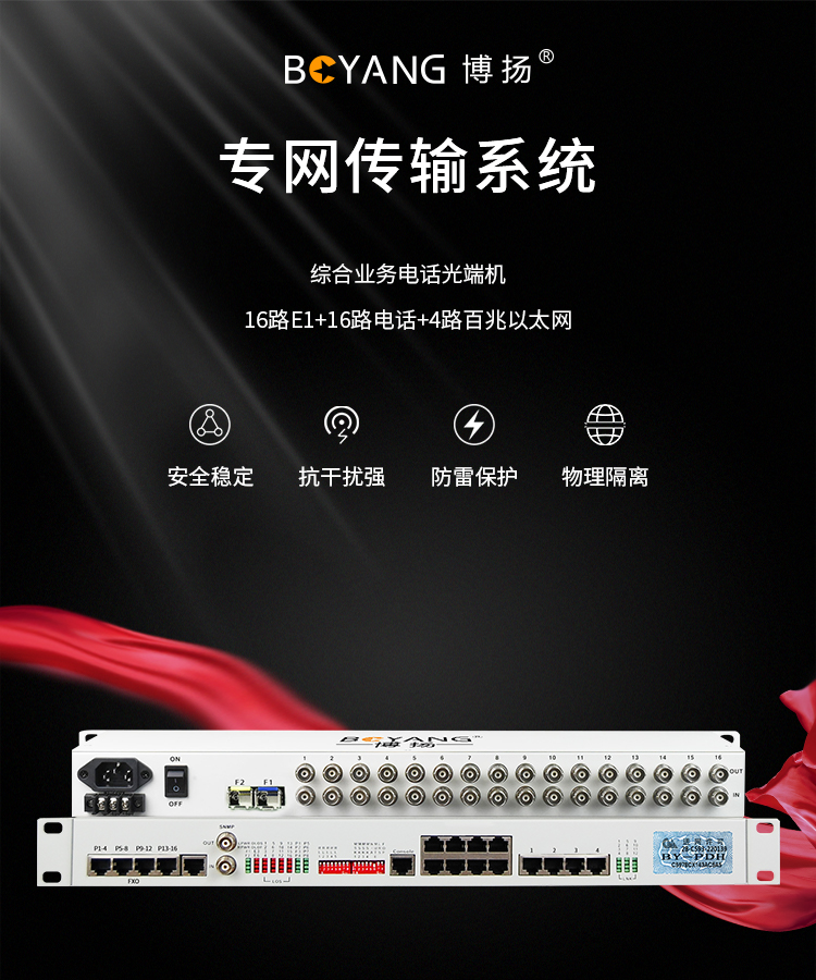 博扬综合业务电话光端机 16路E1+16路电话+4路百兆以太网物理隔离 单纤60km机架式 1对价B 白色