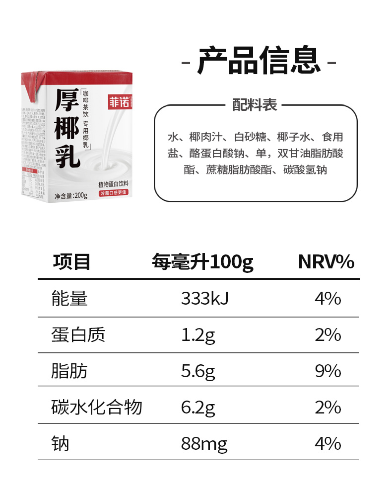 菲诺mini版厚椰乳200g*12盒 白色