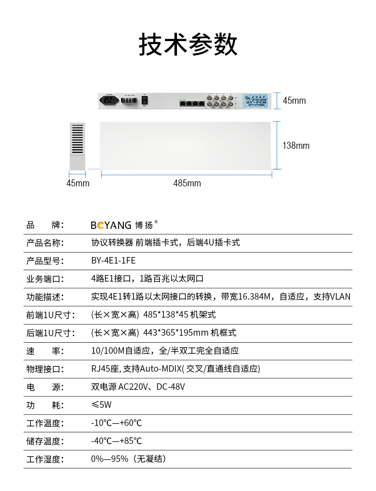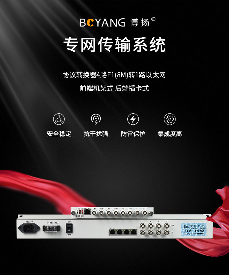 博扬(BOYANG) 协议转换器4路E1(8M)转1路以太网 前端机架式 后端插卡式 1对价 白色