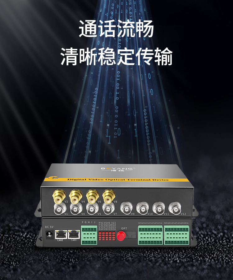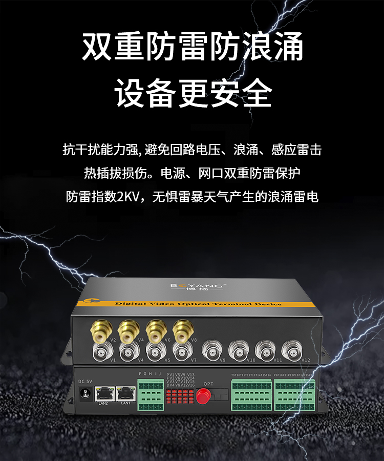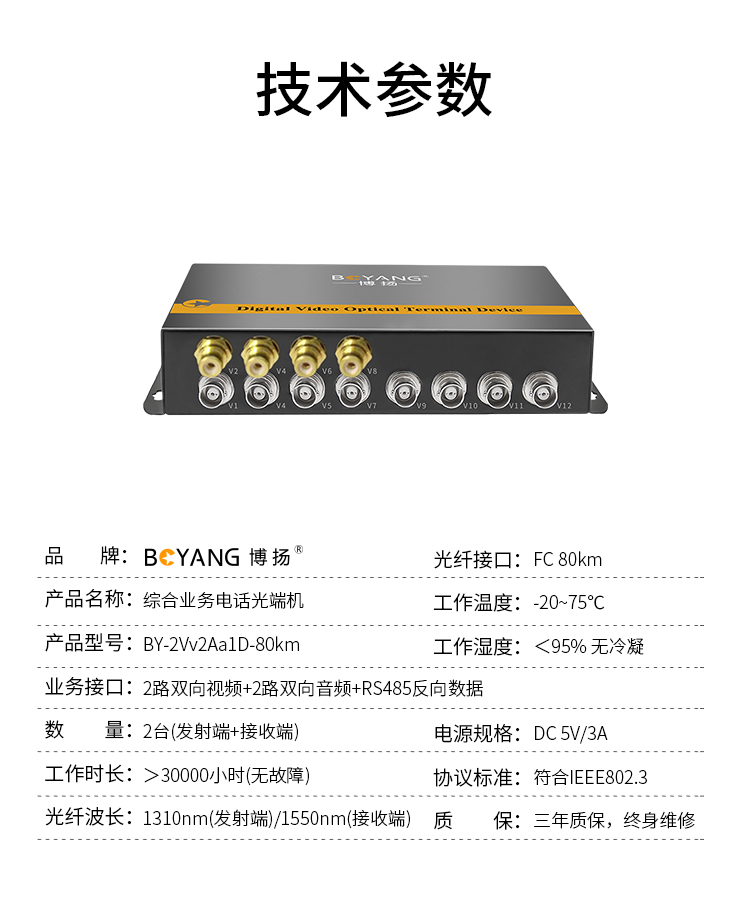 博扬 综合业务电话光端机 2路双向视频+2路双向音频+反向485 单模单纤80KM 1对 BY-2V 黑色