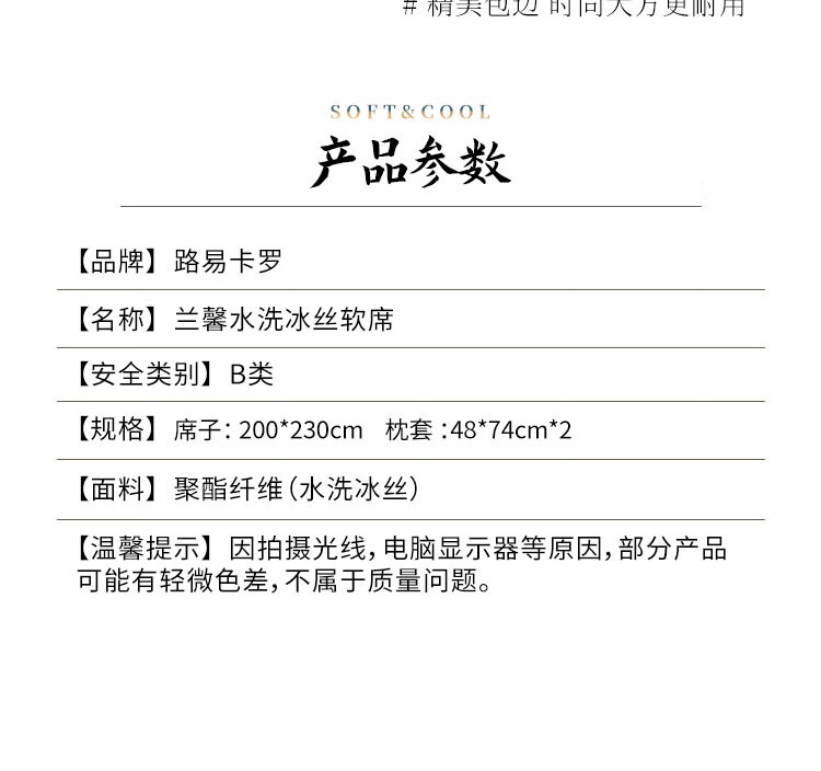 路易卡罗(LOUIS.KELLOG)兰馨水洗冰丝软席 LK3269 蓝色 1.8米床