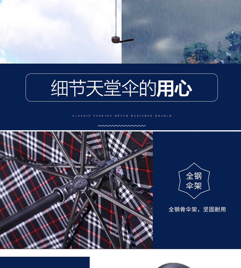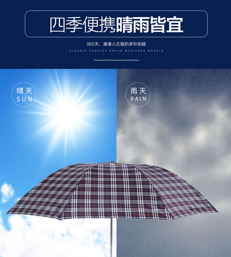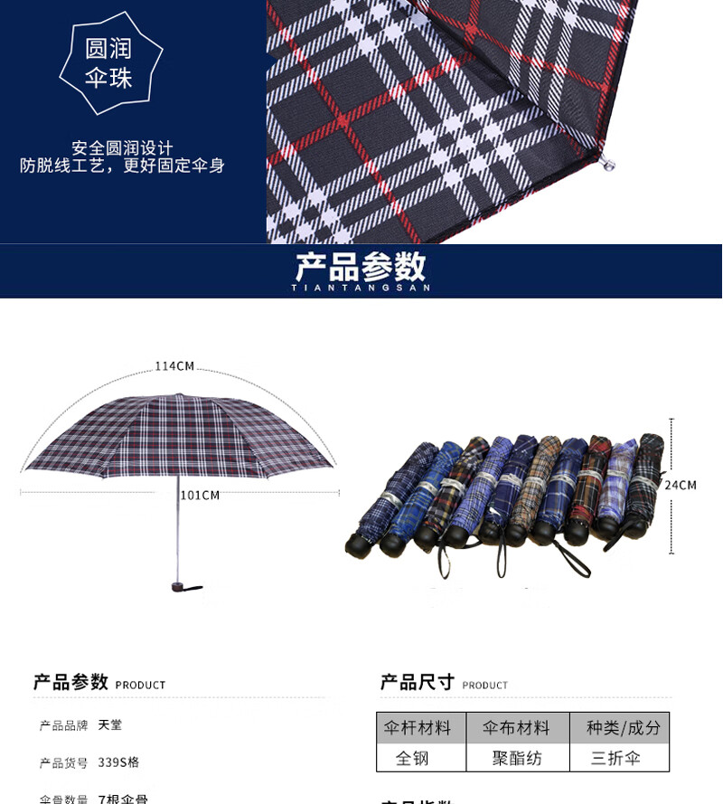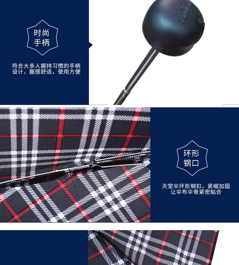 天堂晴雨折叠伞商务韩版男士女士经典三折伞339s格子伞 藏青色 细格(单位:把) 随机