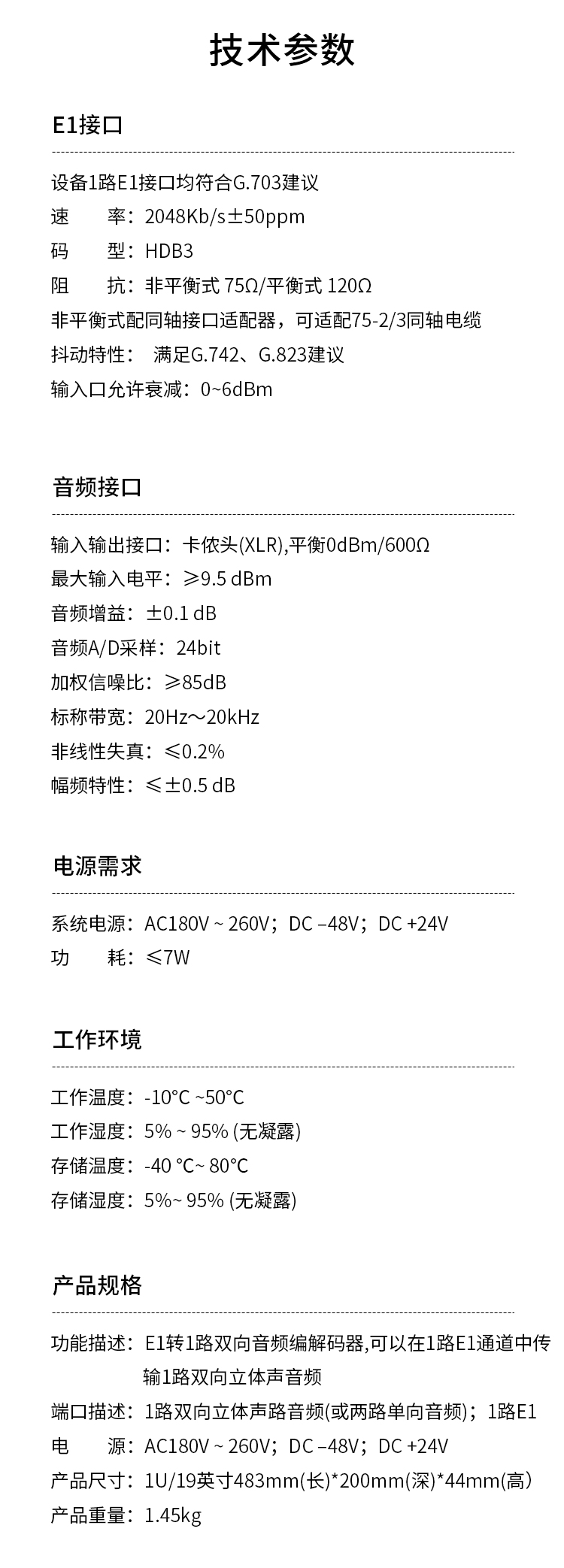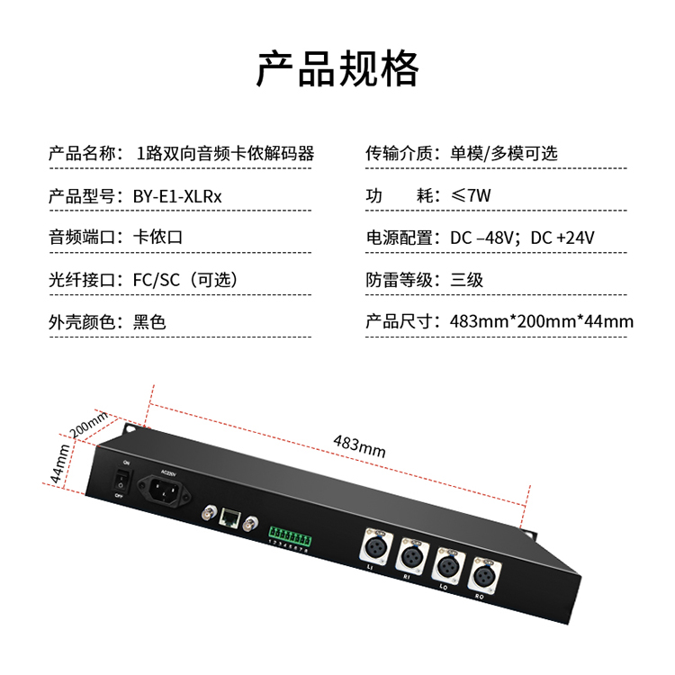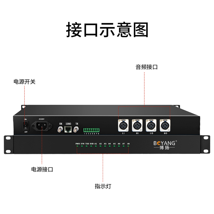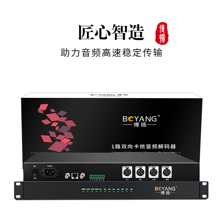 博扬 1路E1转1路双向音频转换器 卡侬头平衡音频2M延长器 1路双向传输器 1U机架式一对 黑色