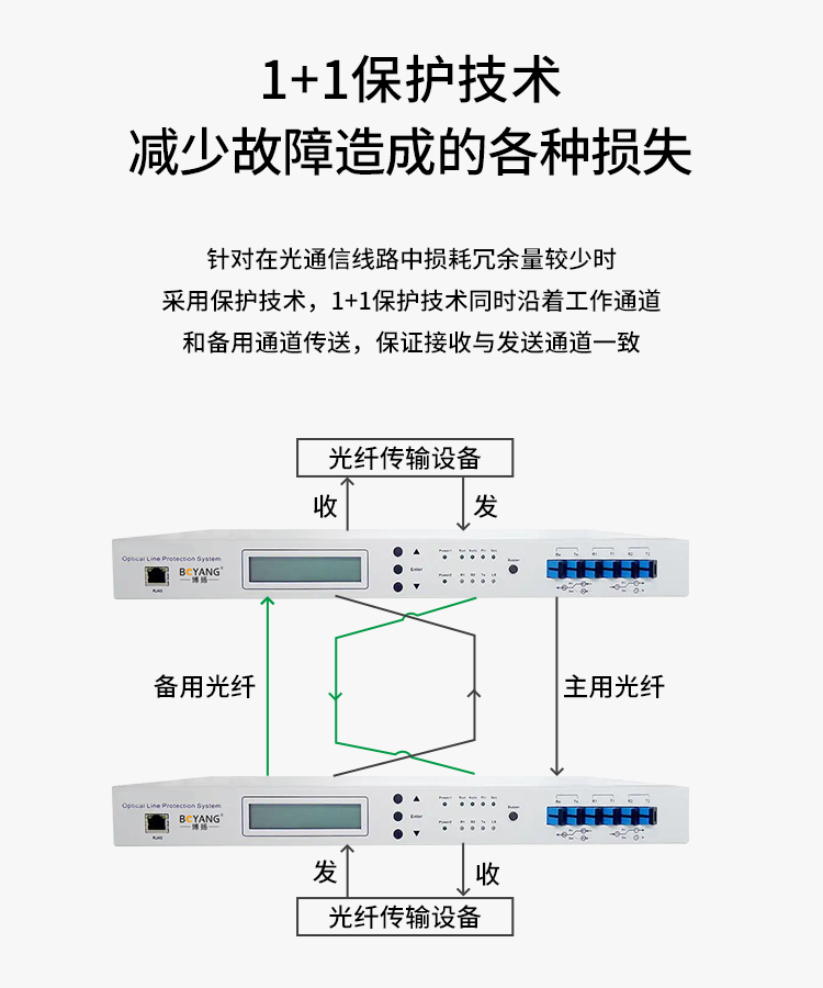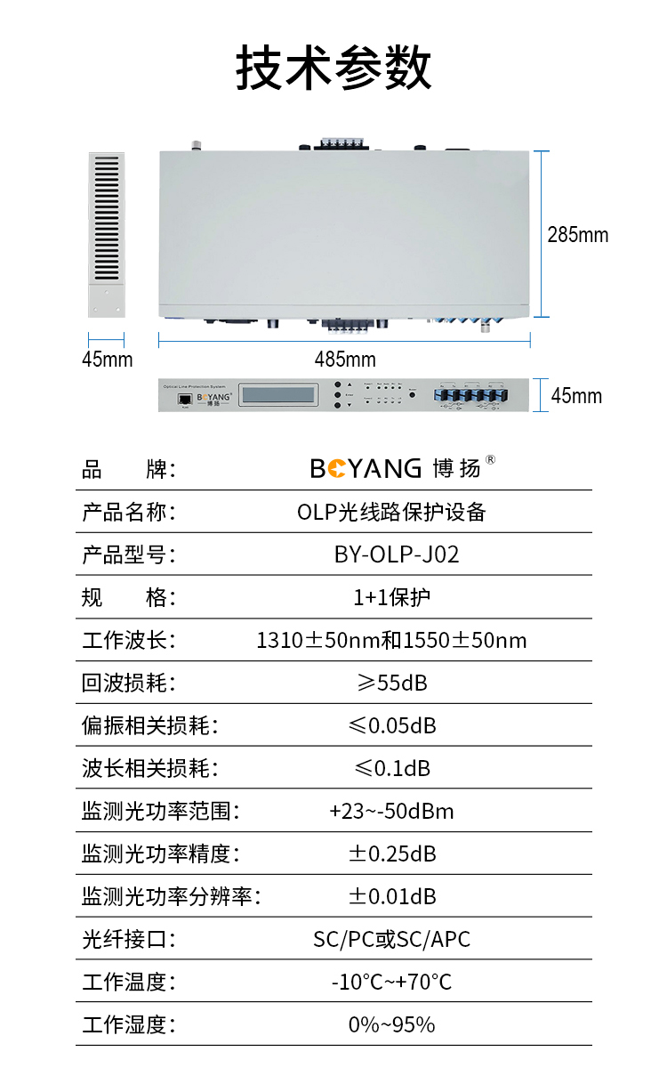 博扬 OLP光线路保护设备 1+1备份光纤倒换设备 提供2路光路由保护1路光业务不中断 1对价 白色