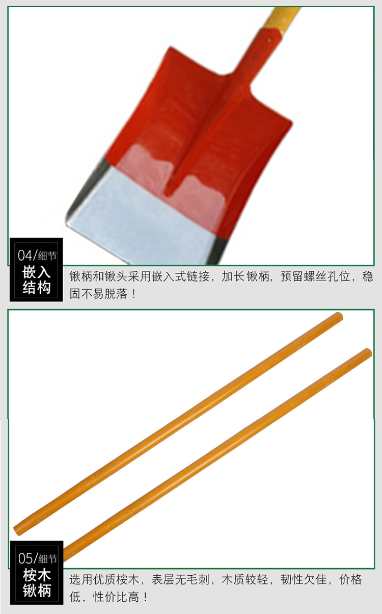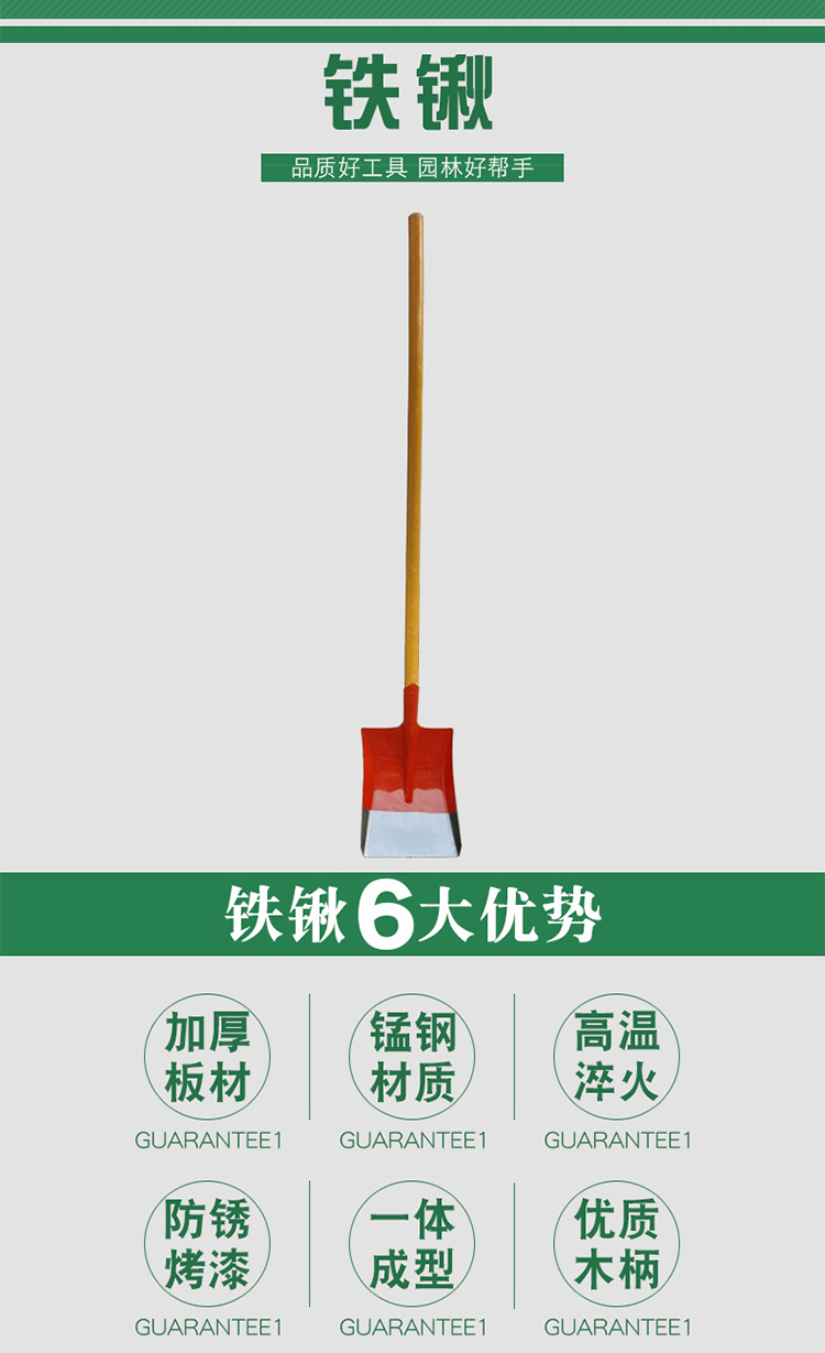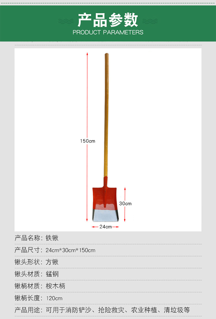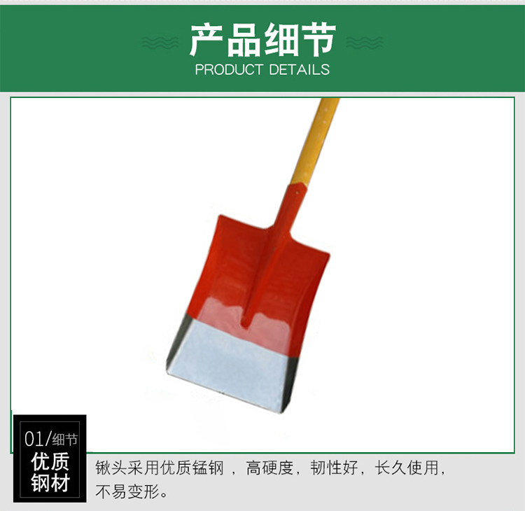 网问五金 TQ02 30*24*150cm锰钢方头铁锨农用植树铁锹桔色(单位:把) 桔色