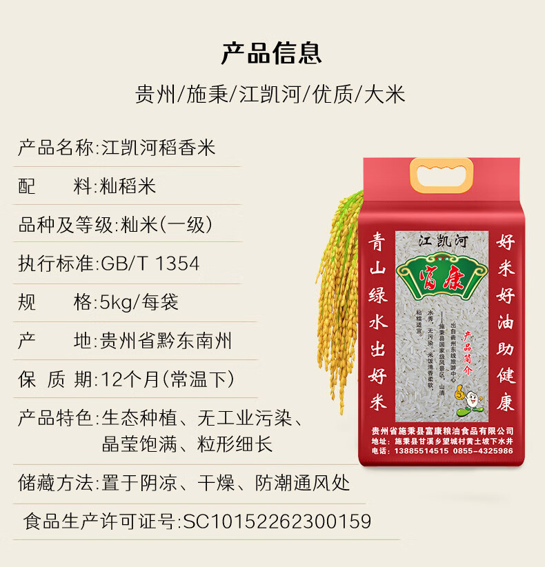 江凯河 贵州大米农家优质稻香米5kg(单位:袋) 白色