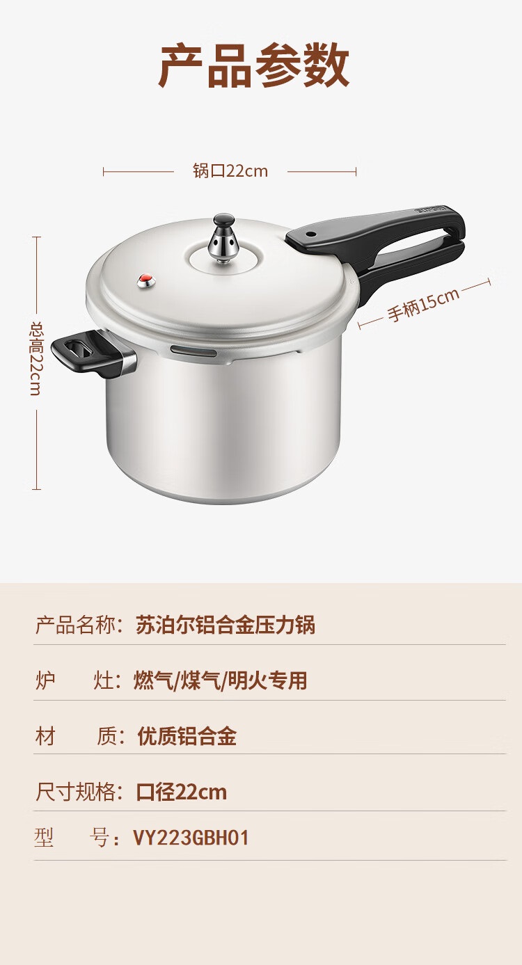 苏泊尔(SUPOR) VY223GBH01 22cm 高压锅 银色(单位:台)