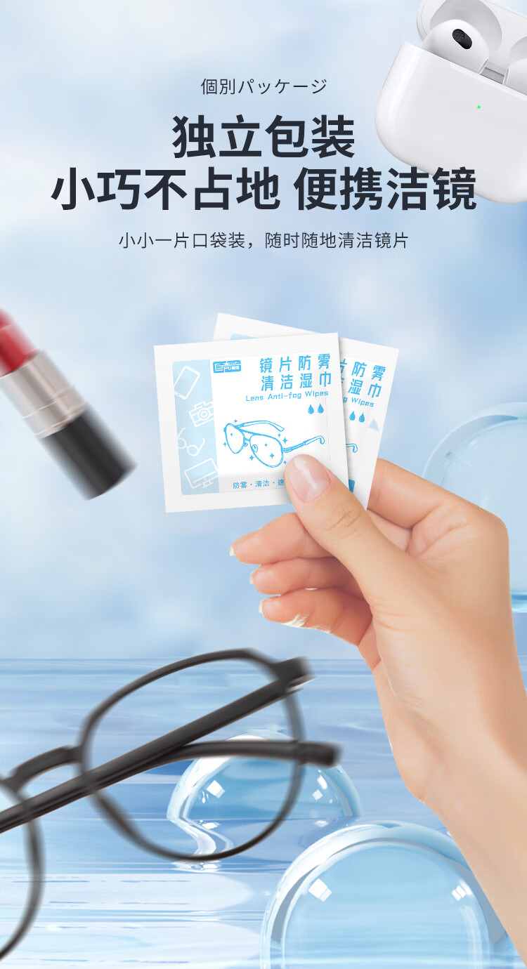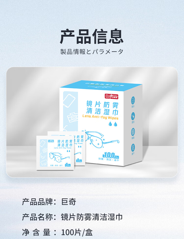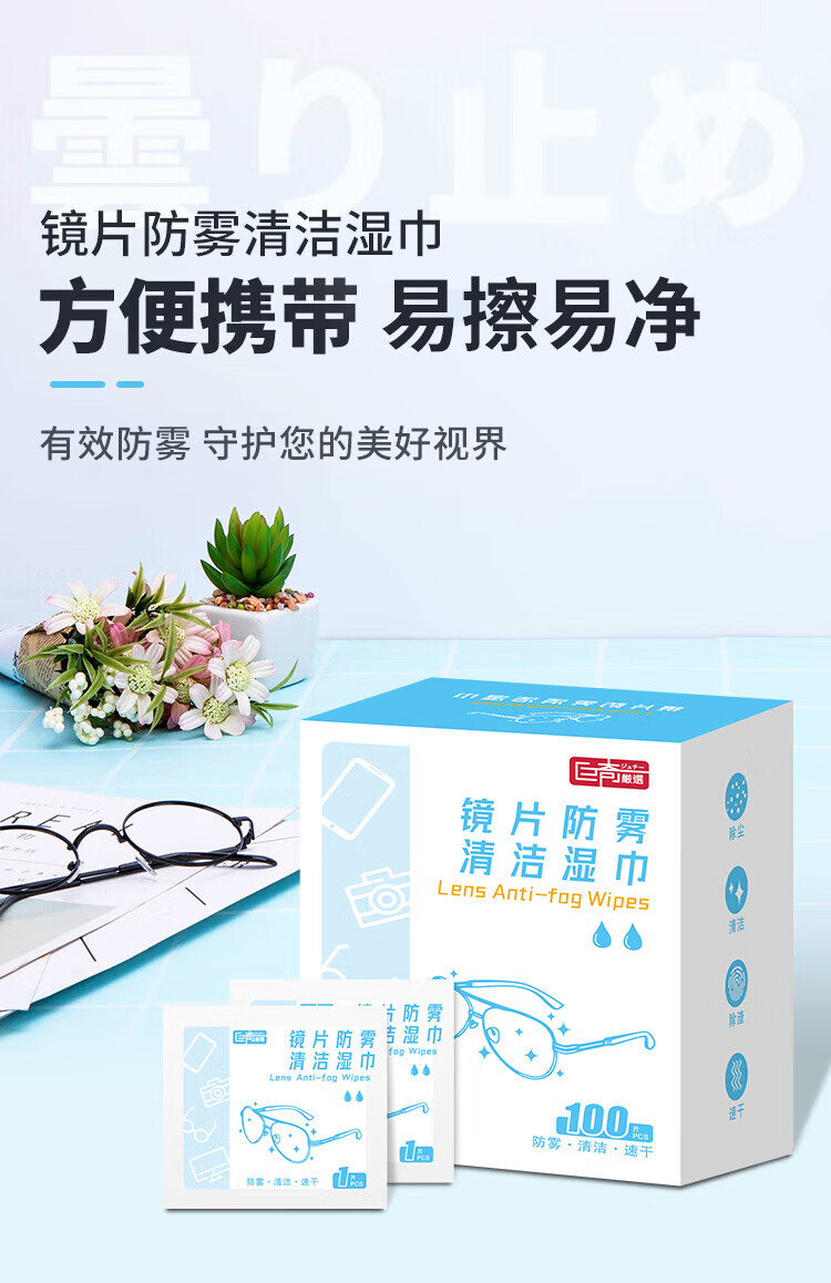 巨奇(JUQI) 一次性眼镜清洁片 镜片防雾湿巾 100片*2盒 白色(单位:套)