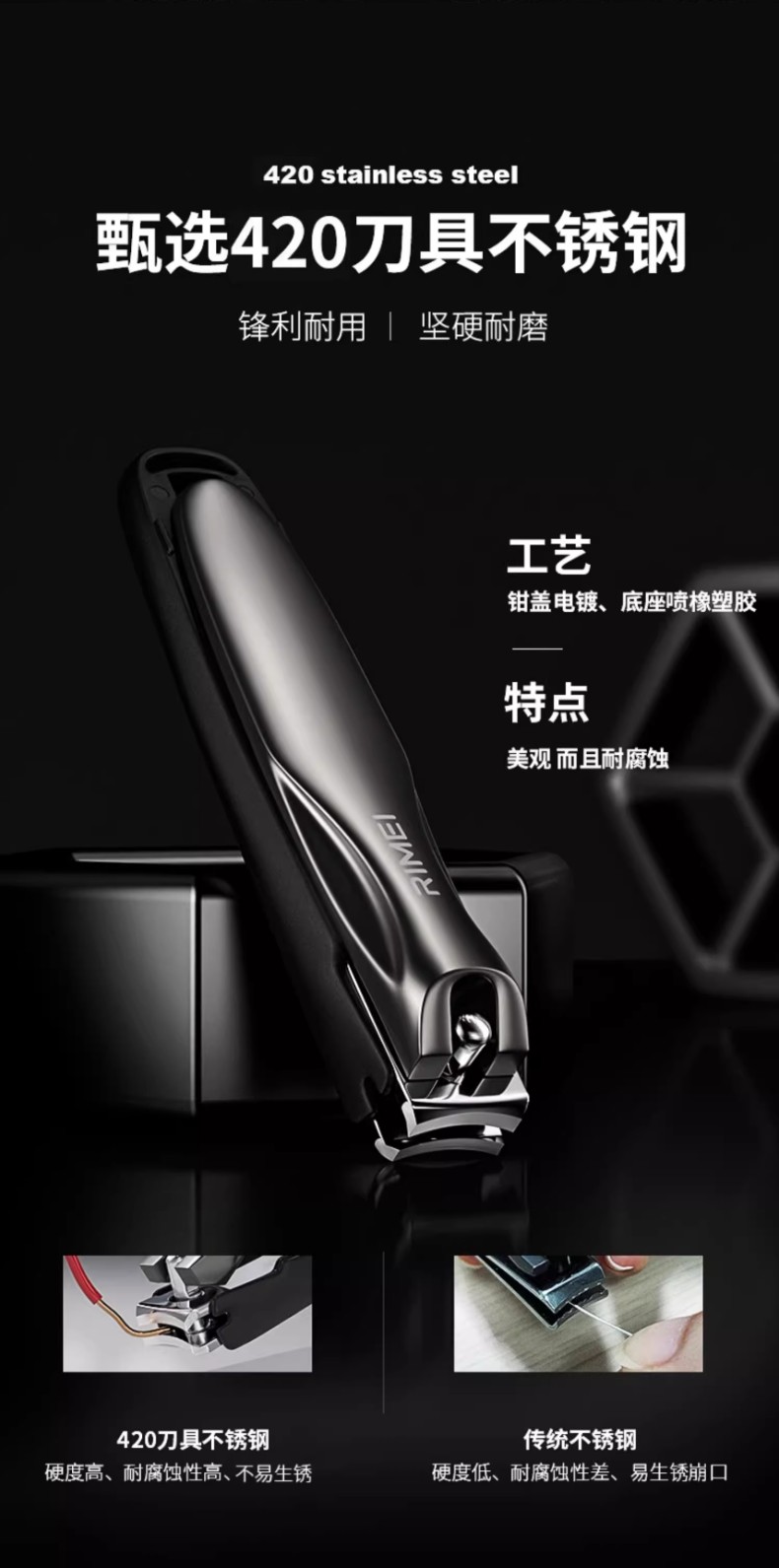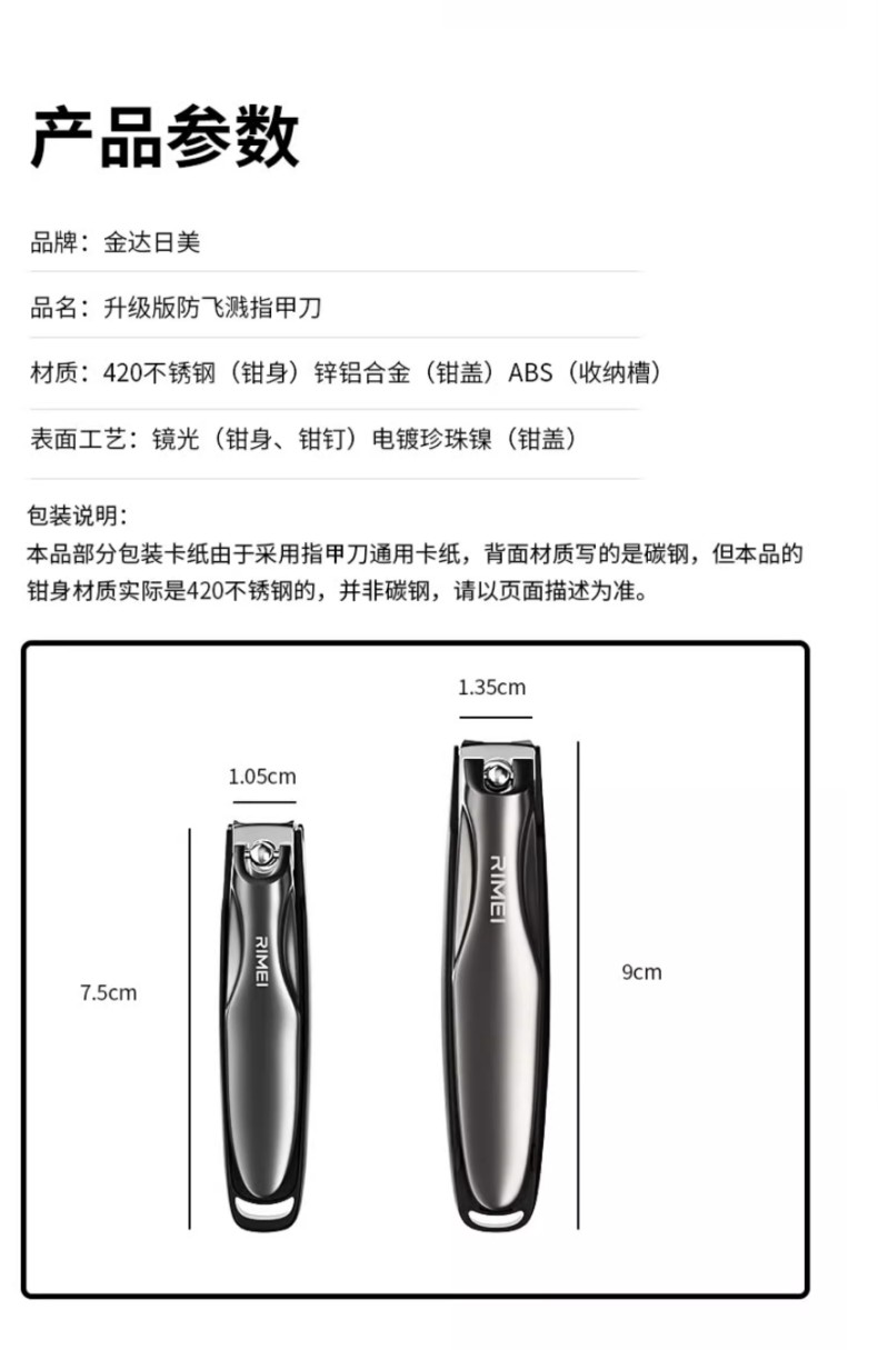 金达日美 LP16003 中号-6.9*1.2cm 不锈钢指甲钳 混色(单位:个)