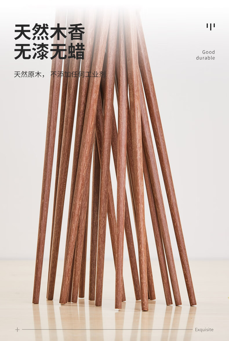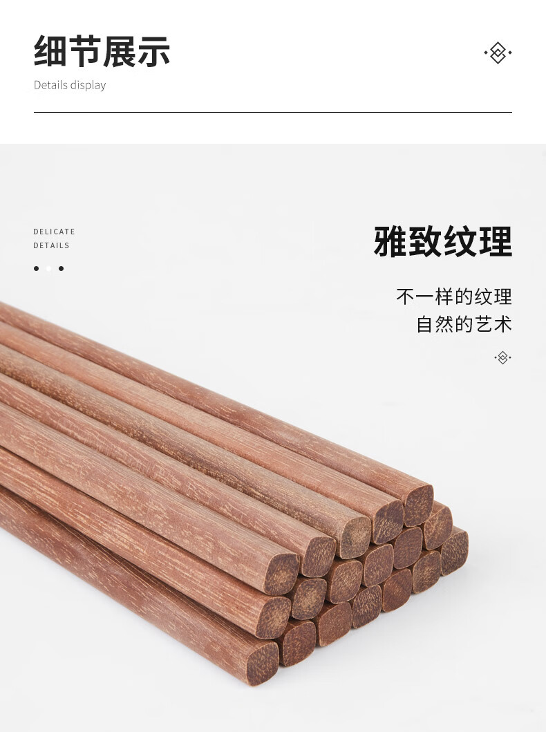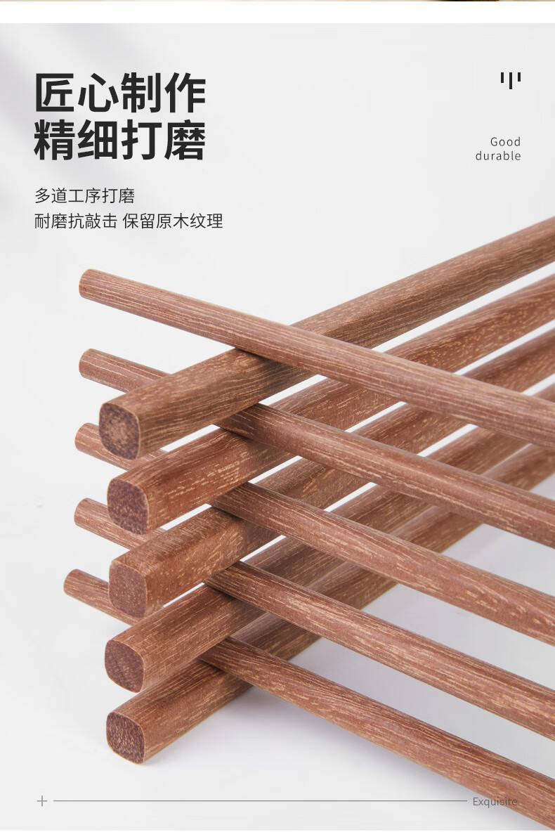 唐宗筷 C6253 10双装/盒*3盒 红檀木筷子福筷 枫叶色(单位:组)