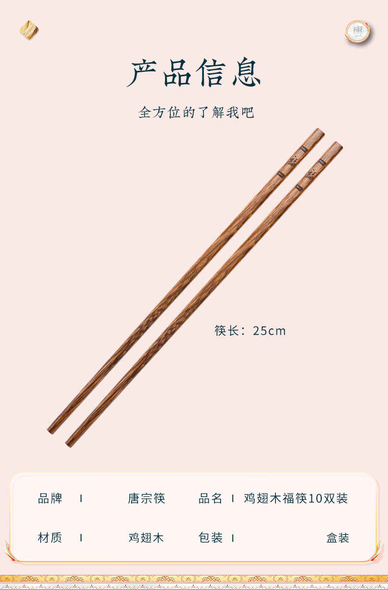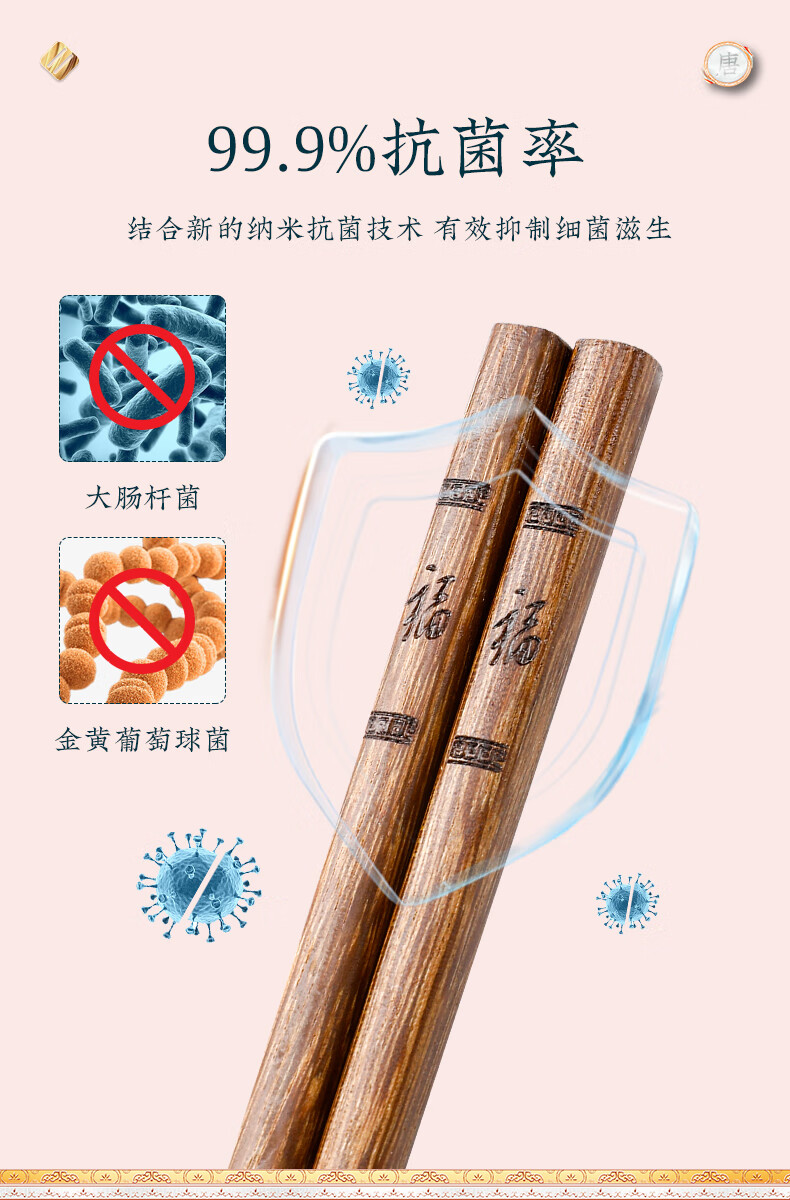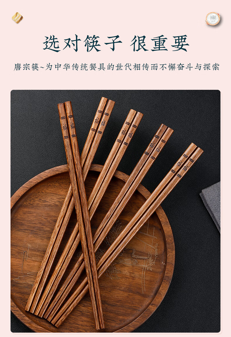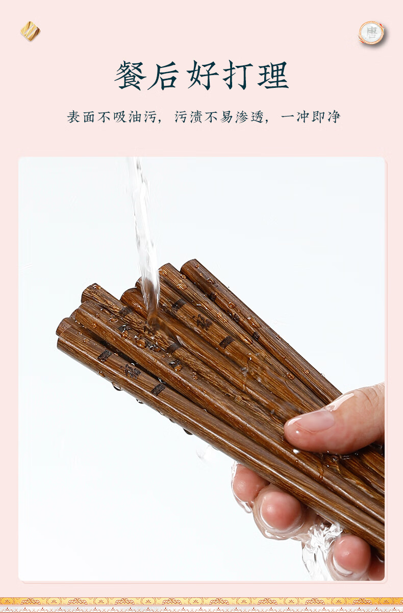唐宗筷 C3054 10双装/组*3组 抗菌鸡翅木筷子 粉红色(单位:组)