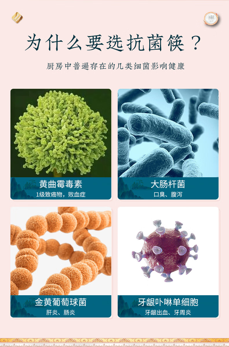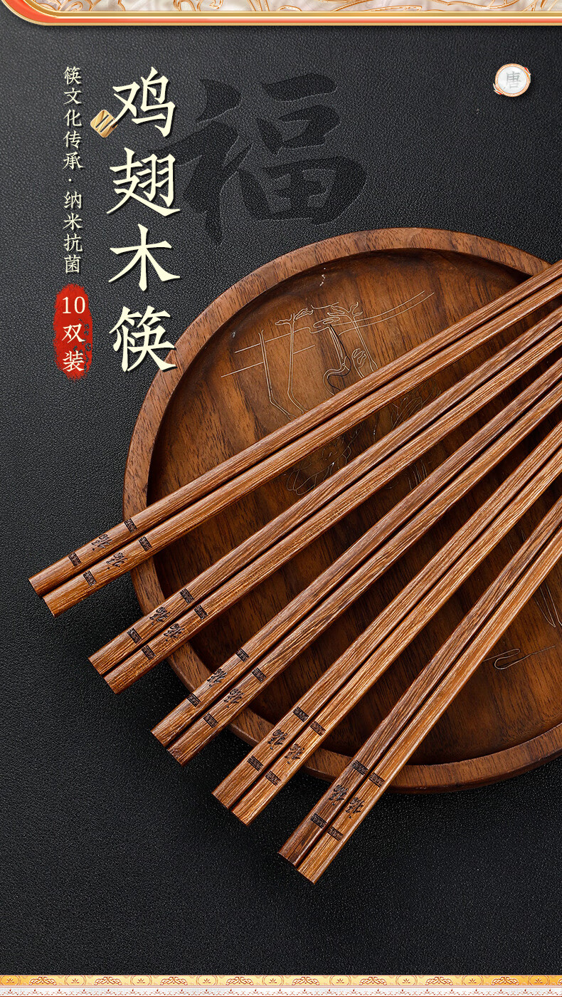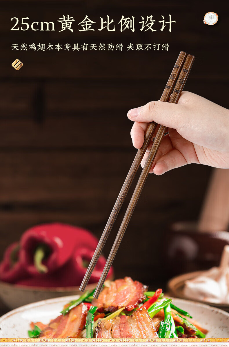 唐宗筷 C3054 10双装/组*3组 抗菌鸡翅木筷子 粉红色(单位:组)