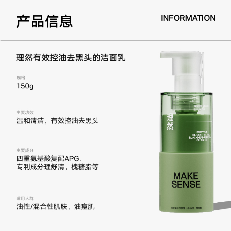 理然 去油去黑头 有效控油洁面乳 150g 绿色(单位:瓶)