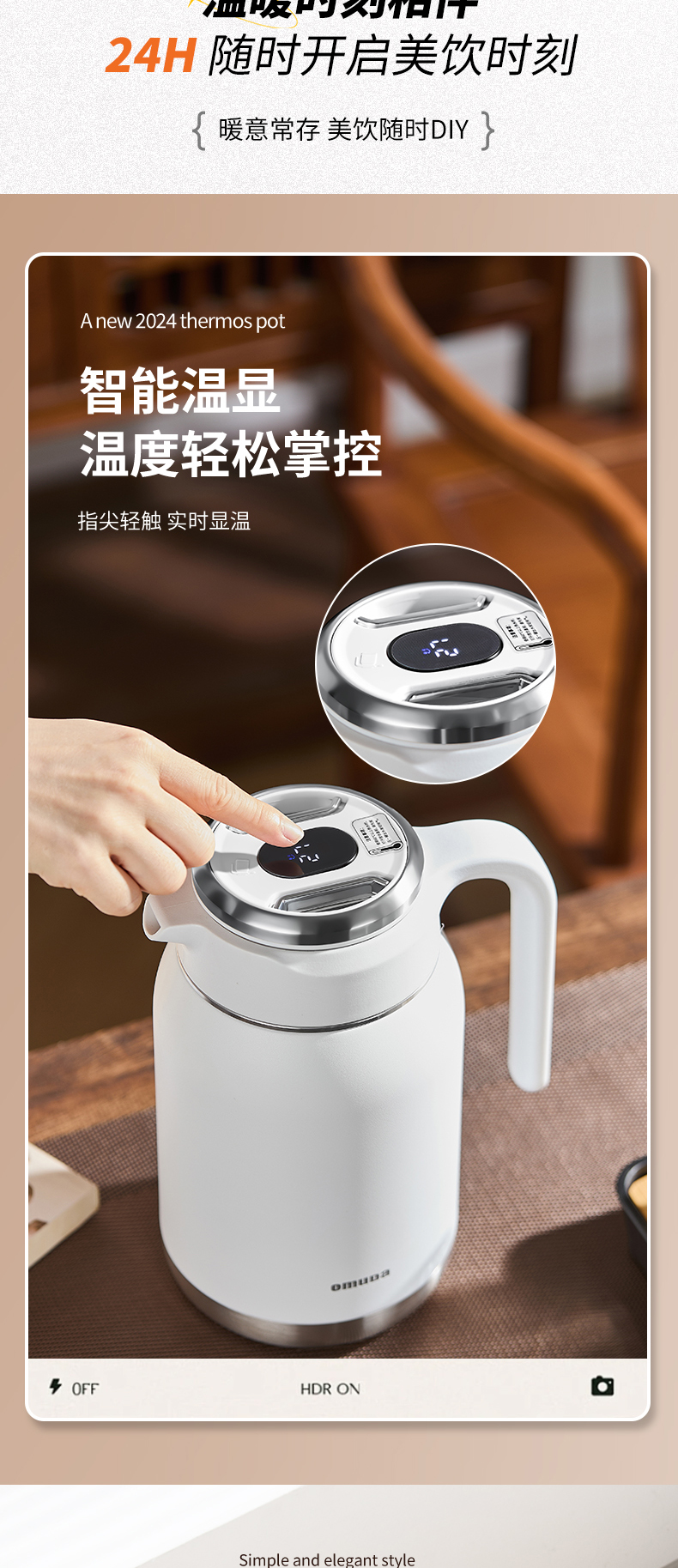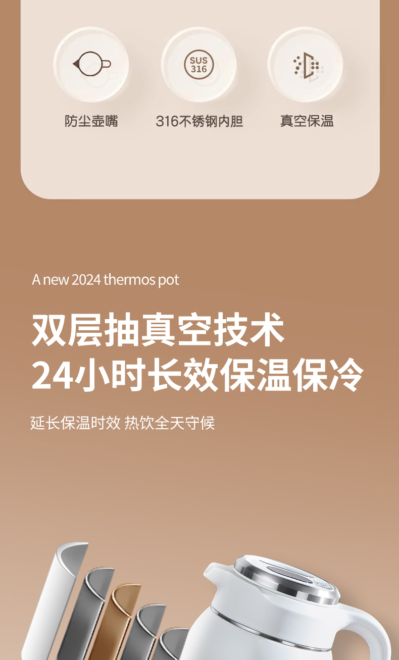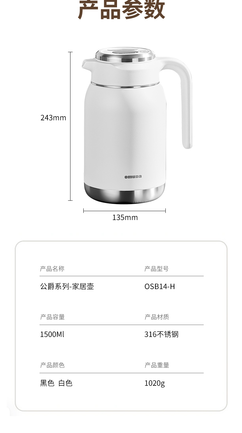 欧美达(omuDa) OSB14-H 1500ml 双层真空保温壶 白色(单位:个)