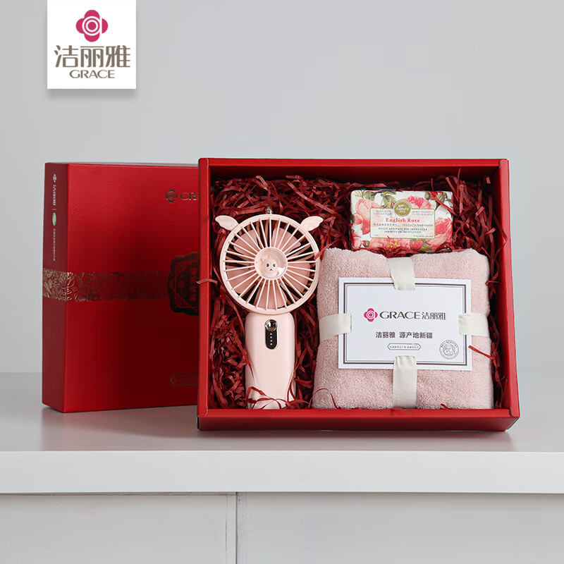 洁丽雅(Grace) 香榭丽清凉毛巾风扇香皂三件套 W0092 76*35cm*100g 粉色(单位:盒)