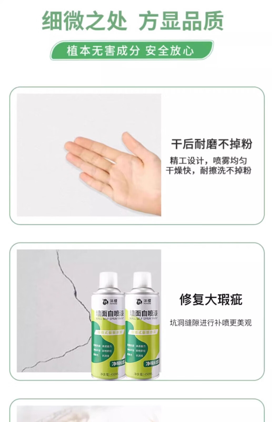 沫檬 墙面修复漆 450ml 去污翻新 白色(单位:瓶)