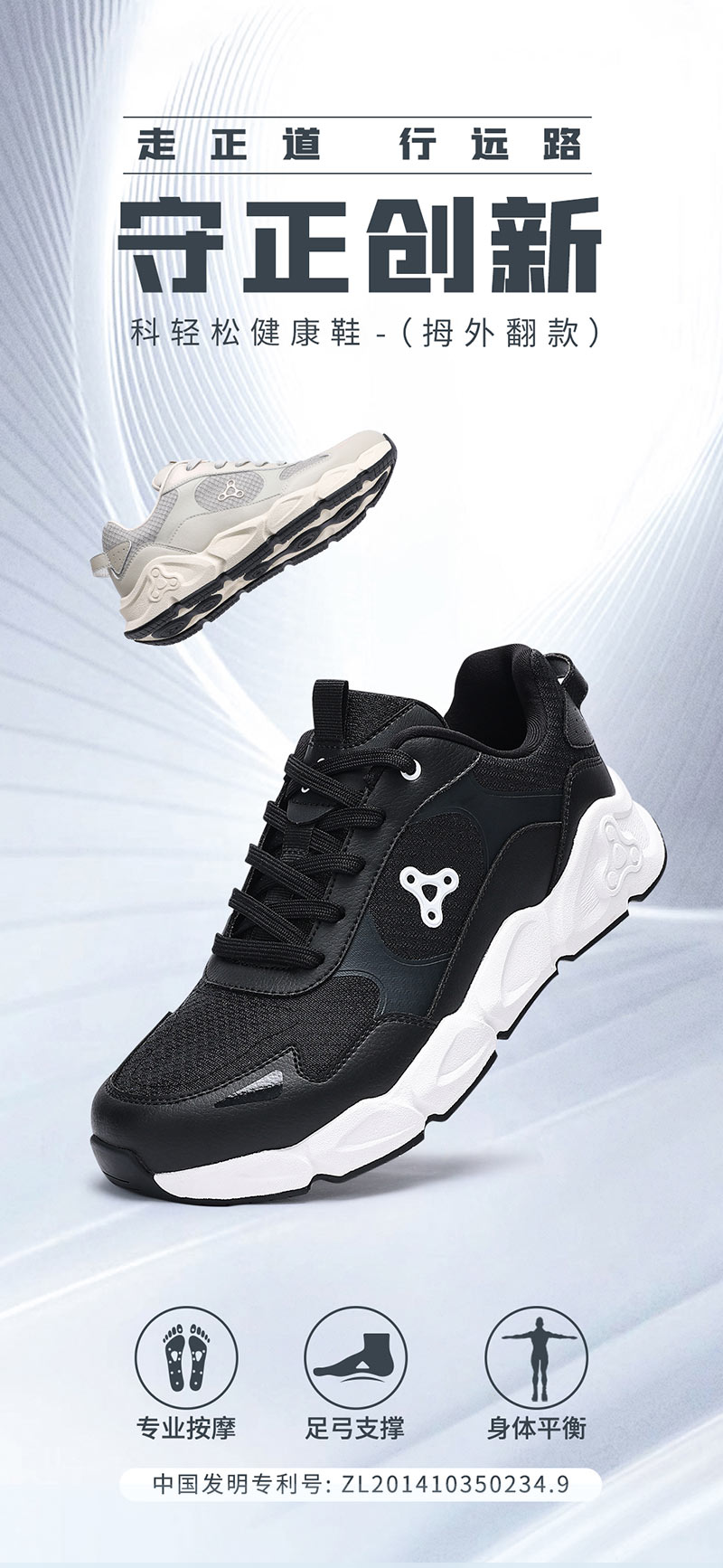 足行健按摩鞋春季网面透气足底磁石拇指外翻鞋-守正创新 单位:双 云雾灰 40