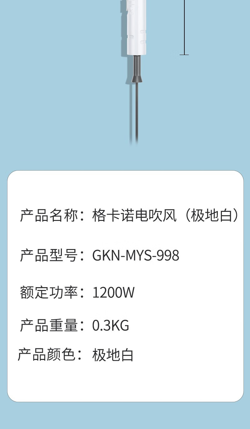 格卡诺(GKN) 吹风机 GKN-MYS-998 1200W 白色(单位:台)