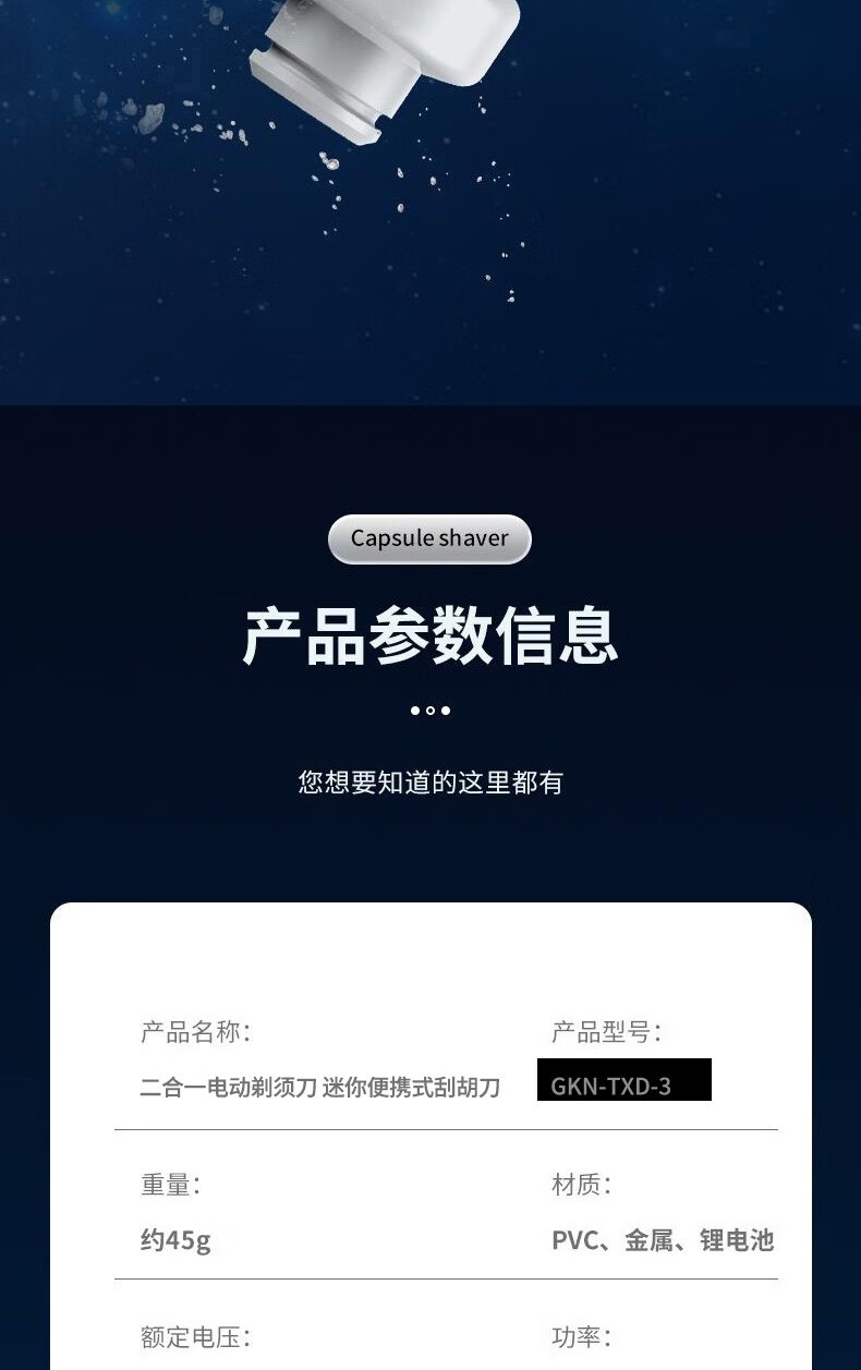 格卡诺(GKN) 迷你便携剃须刀 GKN-TXD-3 5W 白色(单位:台)