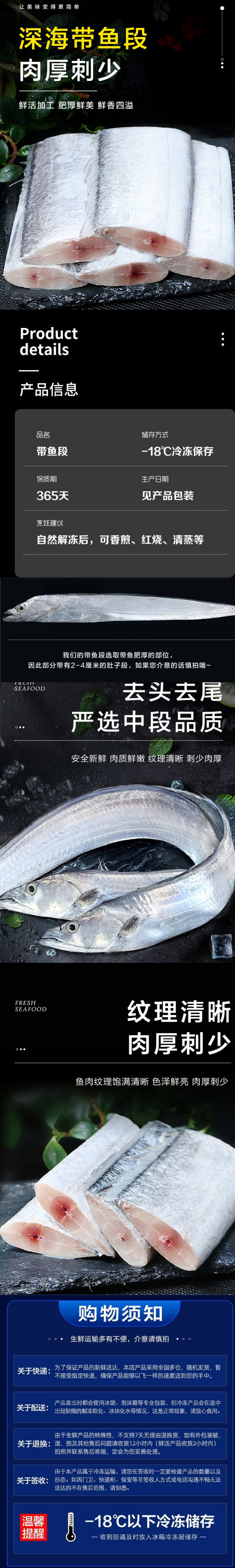 沪澄优选 去头去尾 带鱼段三袋组合装 500-600G/袋*3袋 白色(单位:组)