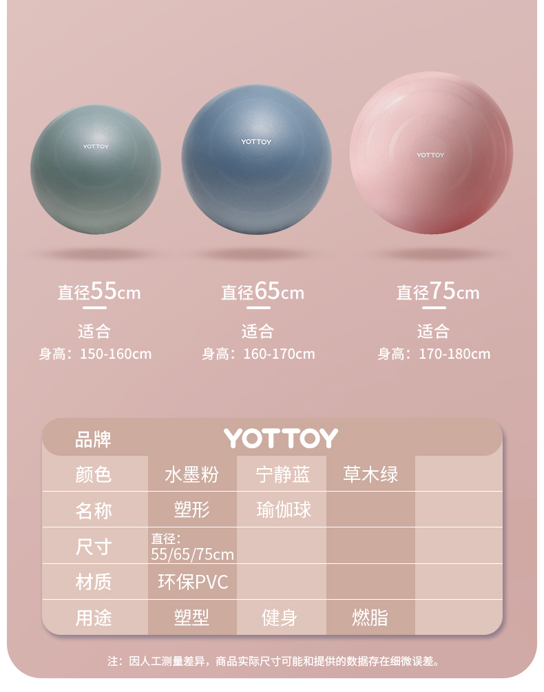 YOTTOY 训练防爆加厚瑜伽球 ByjQsL3055 55cm 宁静蓝(单位:个)