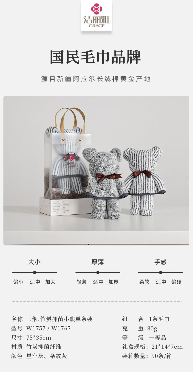 洁丽雅(Grace) 水果派小熊单条装 W1757+W1767 75*35cm 混色(单位:条)
