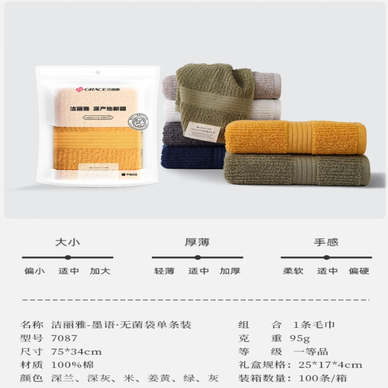 洁丽雅(Grace) 墨语纯棉毛巾单条装 7087 75*34cm 混色(单位:条)