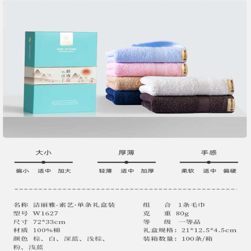 洁丽雅(Grace) 素艺毛巾单条礼盒装 W1627 72*33cm 混色(单位:盒)