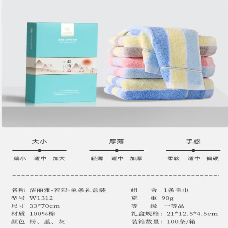 洁丽雅(Grace) 若彩毛巾单条礼盒装 W1312 33*70cm 混色(单位:盒)