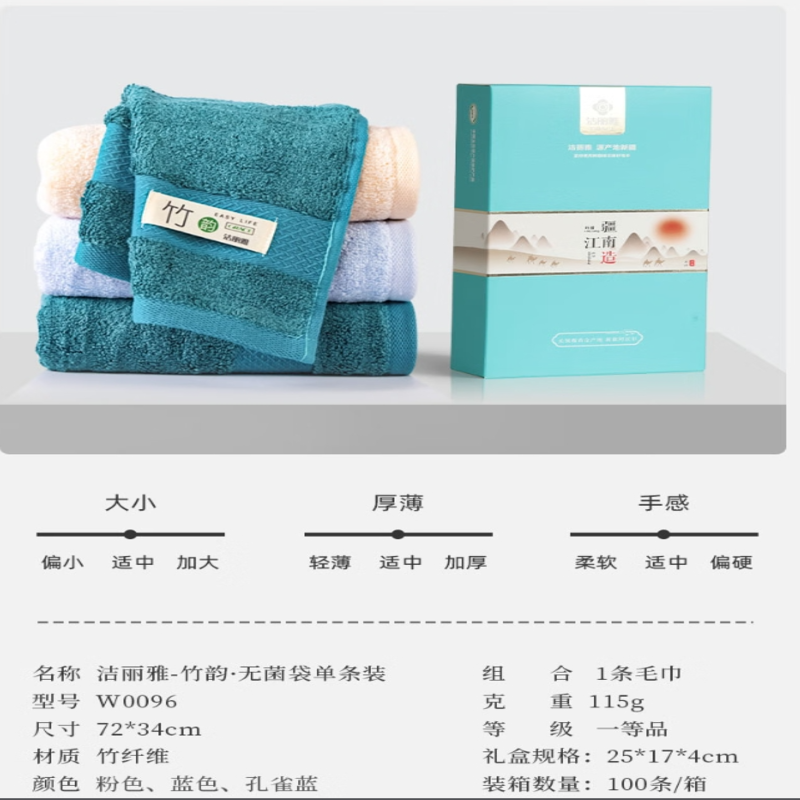 洁丽雅(Grace) 竹韵毛巾单条礼盒装 W0096 72*34cm 混色(单位:盒)