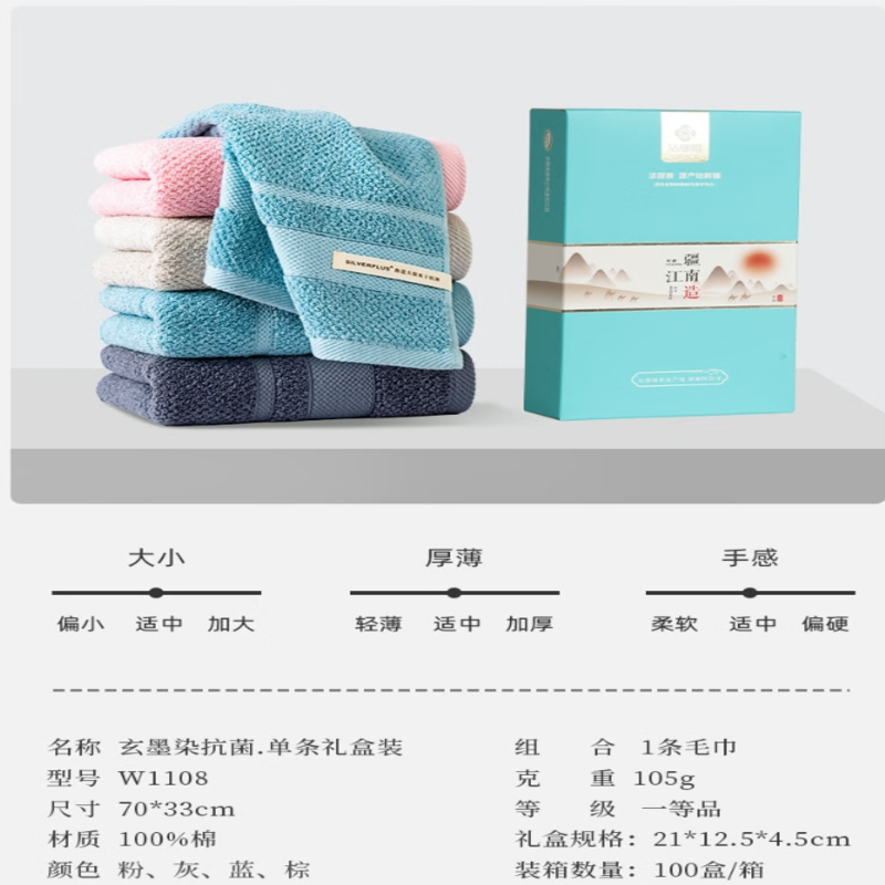洁丽雅(Grace) 玄墨染毛巾单条礼盒装 W1108 70*33cm 混色(单位:盒)