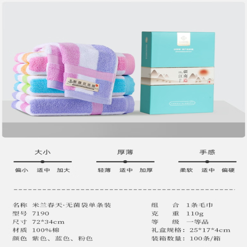 洁丽雅(Grace) 米兰春天毛巾单条礼盒装 7190 72*34cm 混色(单位:盒)