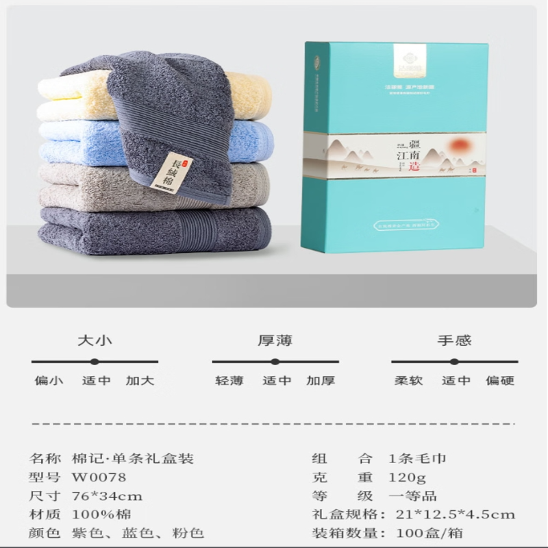 洁丽雅(Grace) 棉记毛巾单条礼盒装 W0078 76*34cm 混色(单位:盒)