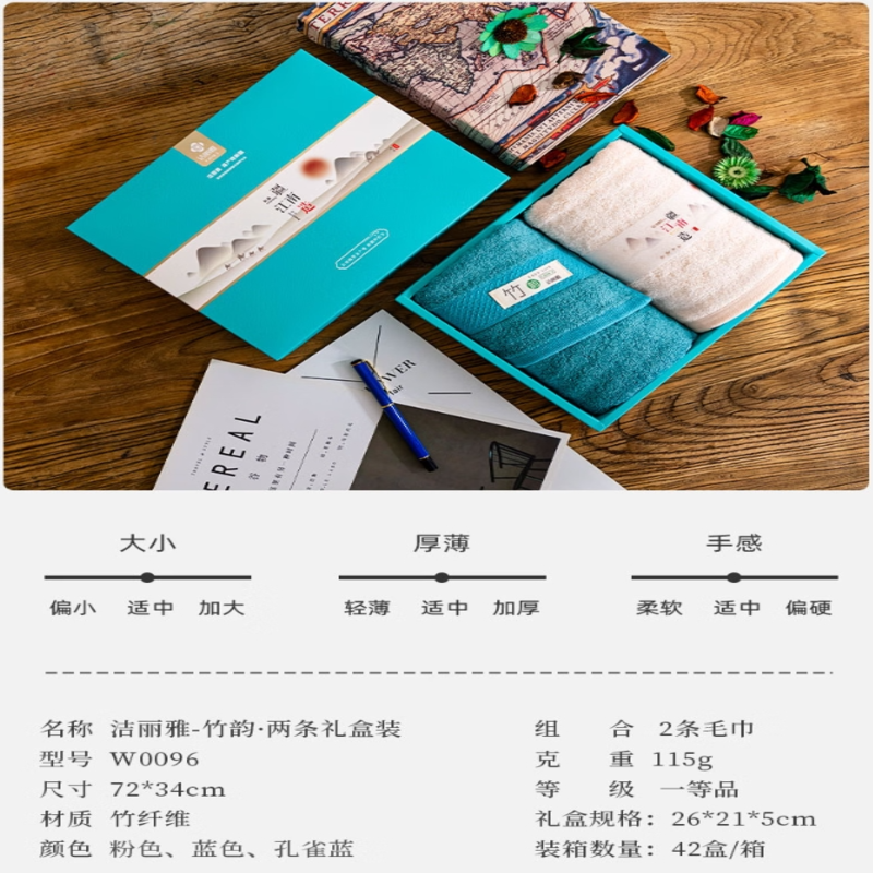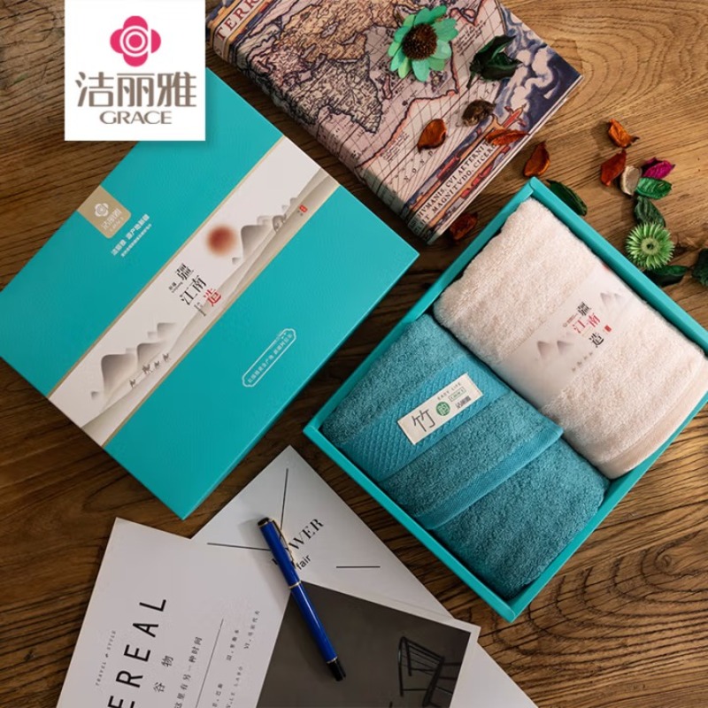 洁丽雅(Grace) 竹韵毛巾双条礼盒装 W0096 72*34cm*2条 混色(单位:盒)