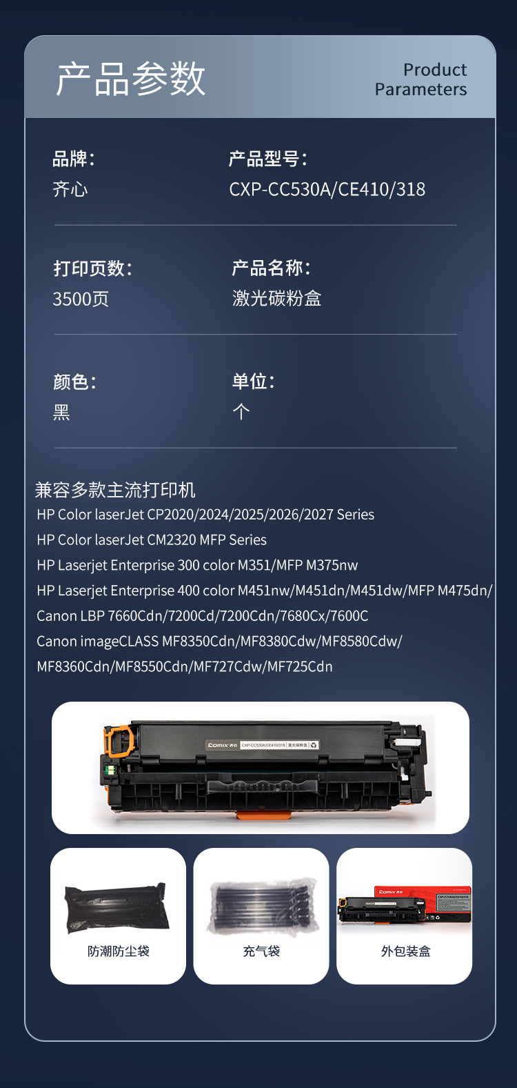 齐心(COMIX) 激光碳粉盒 CXP-CC530A/CE410/3 3500页 黑色(单位:个)