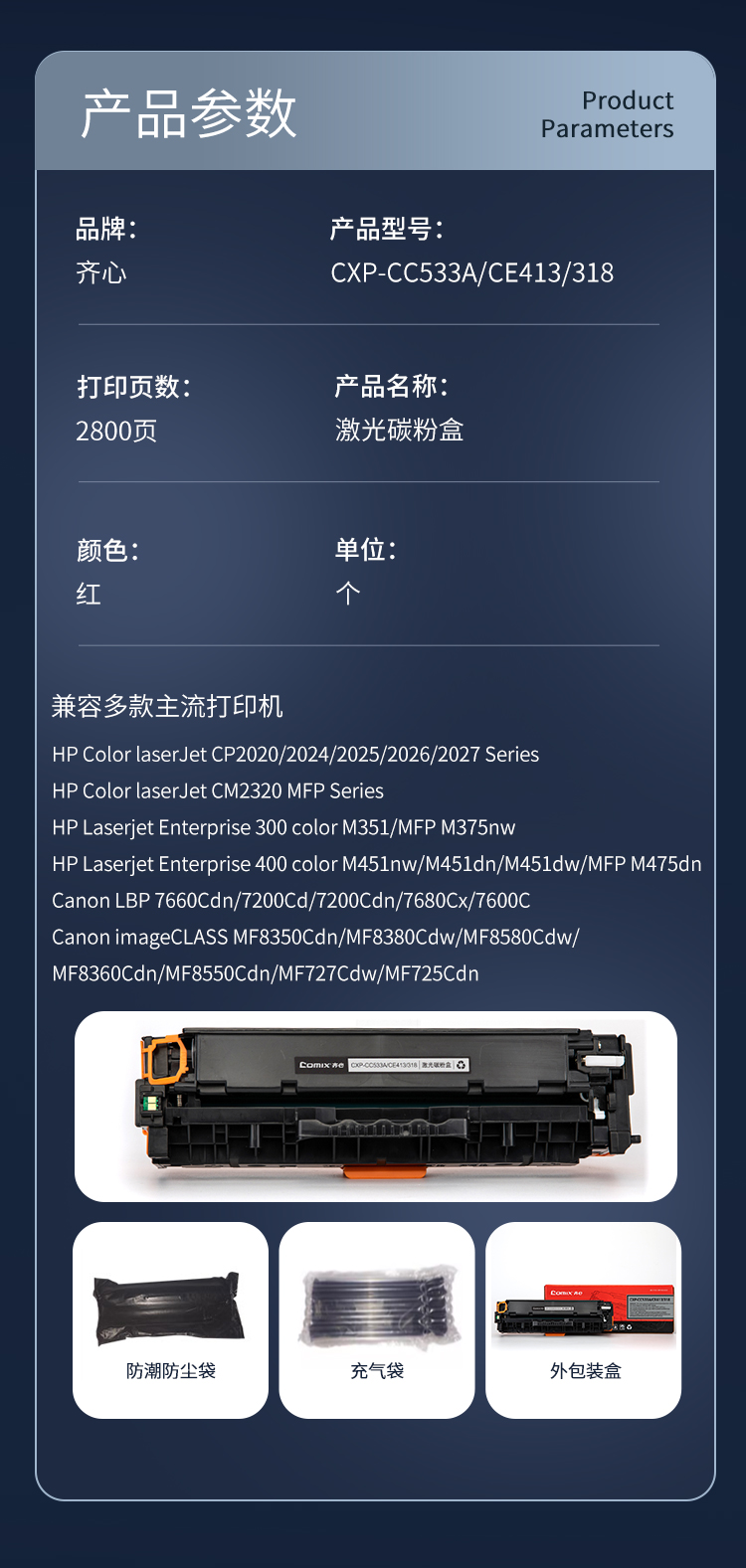 齐心(COMIX) 激光碳粉盒 CXP-CC533A/CE413/3 2800页 红色(单位:个)