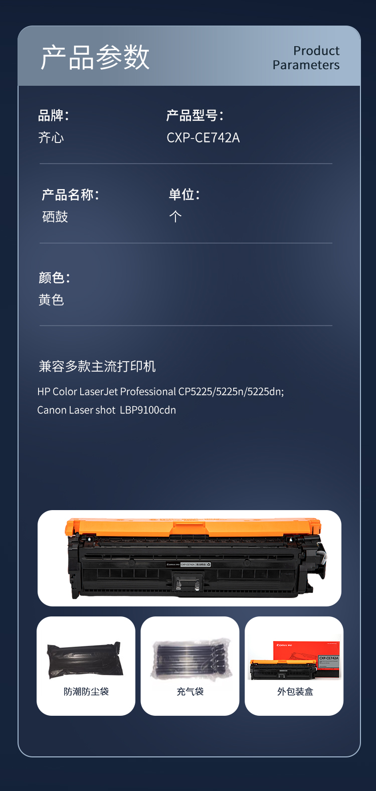 齐心(COMIX) 激光碳粉盒 CXP-CE742A 7300页 黄色(单位:个)
