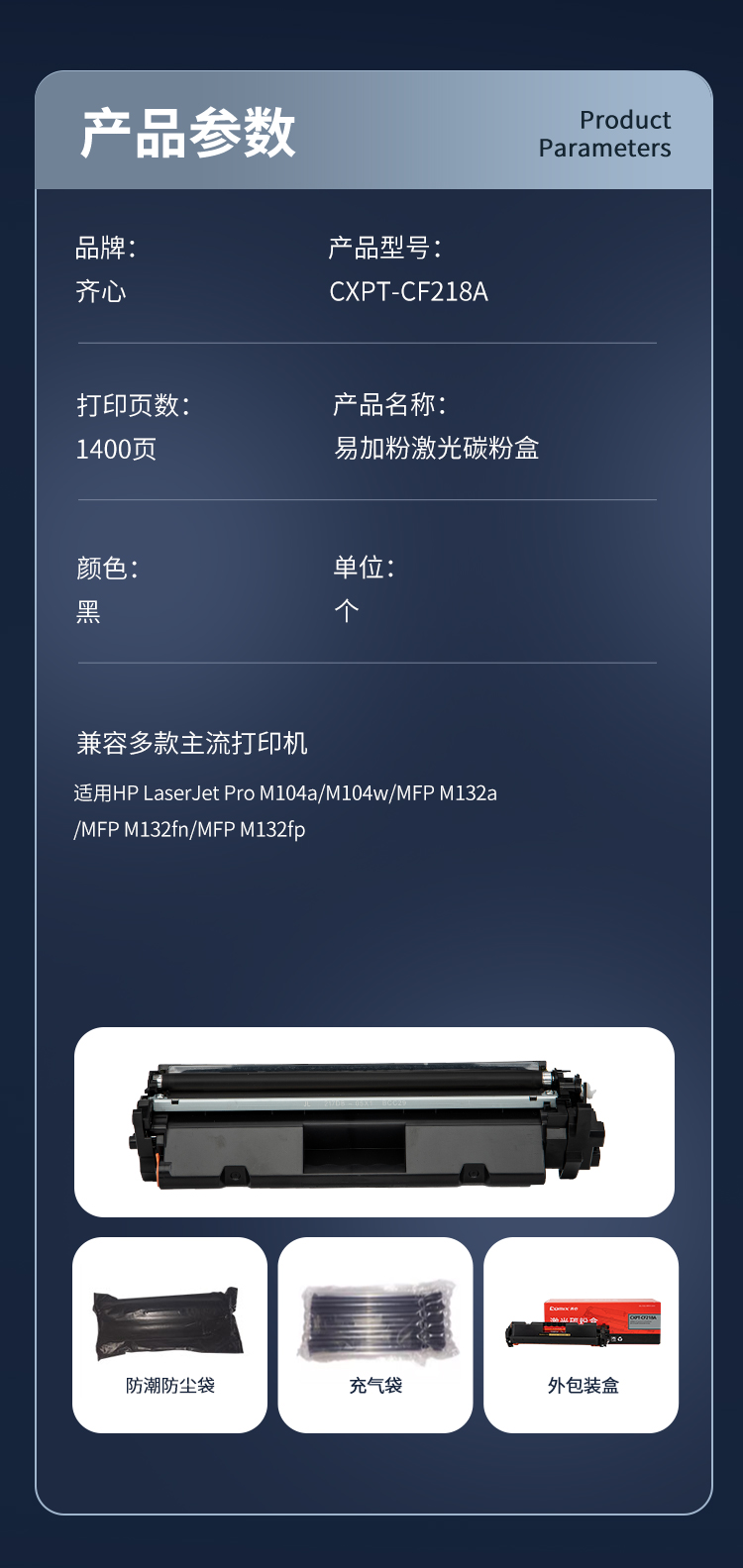 齐心(COMIX) 易加粉激光碳粉盒 CXPT-CF218A 1400页 黑色(单位:个)