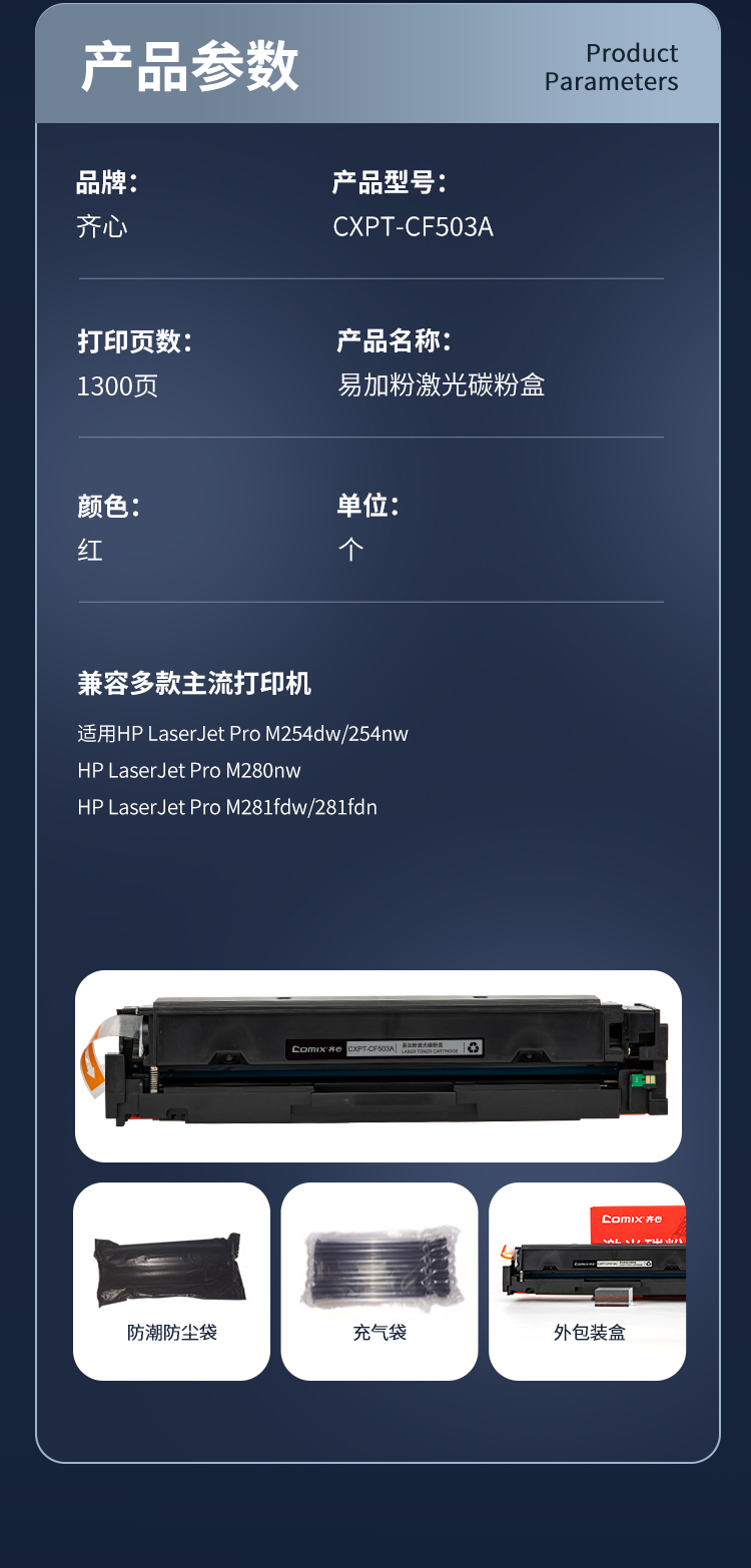 齐心(COMIX) 易加粉激光碳粉盒 CXPT-CF503A 1300页 红色(单位:个)