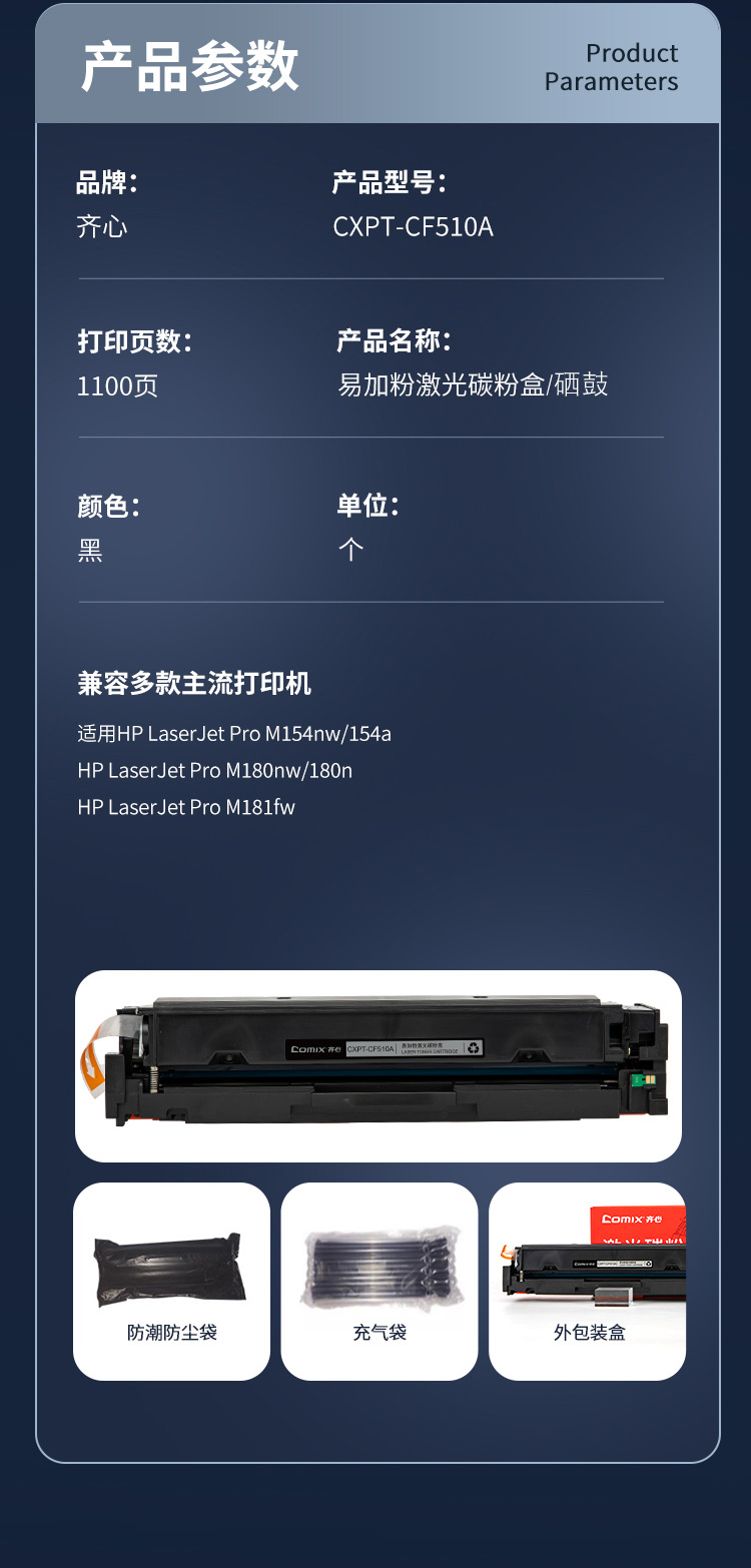 齐心(COMIX) 易加粉激光碳粉盒 CXPT-CF510A 1100页 黑色(单位:个)