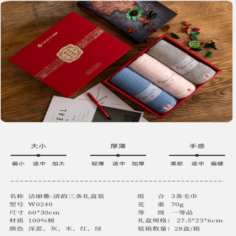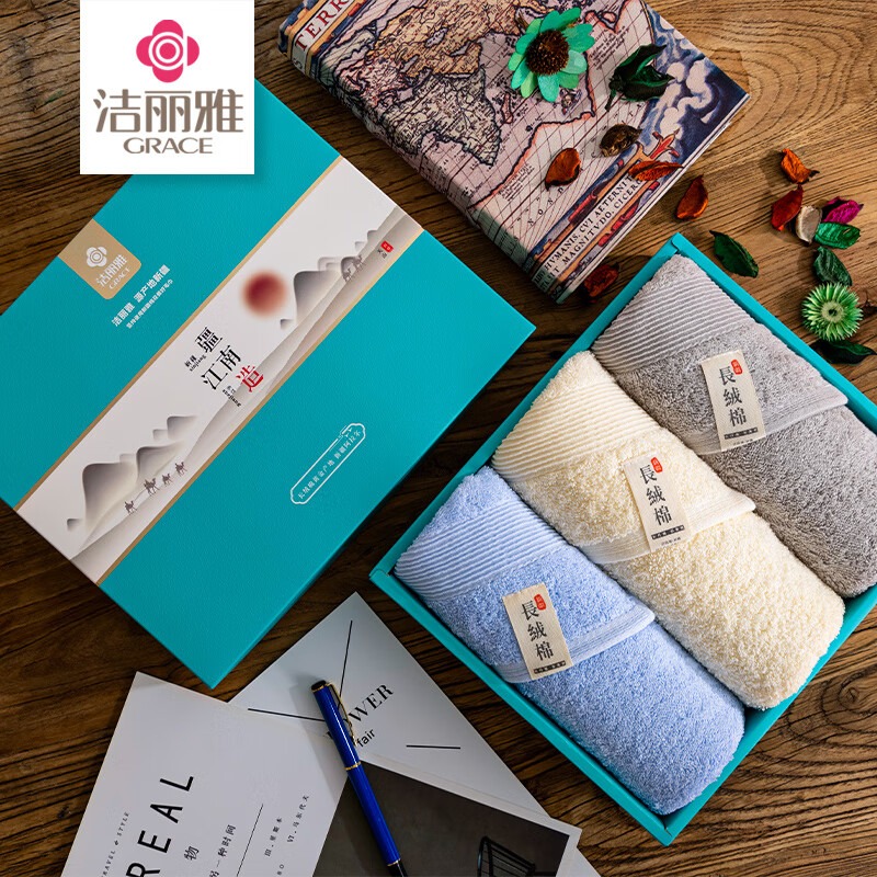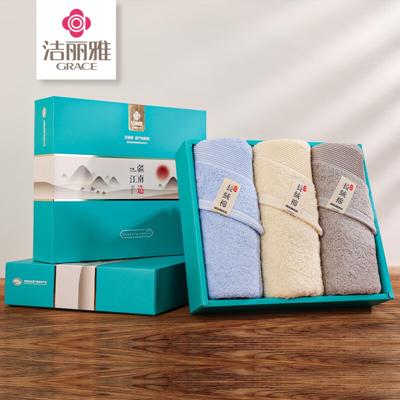 洁丽雅(Grace) 清韵毛巾三条礼盒装 W0240 60*30cm*3条 混色(单位:盒)