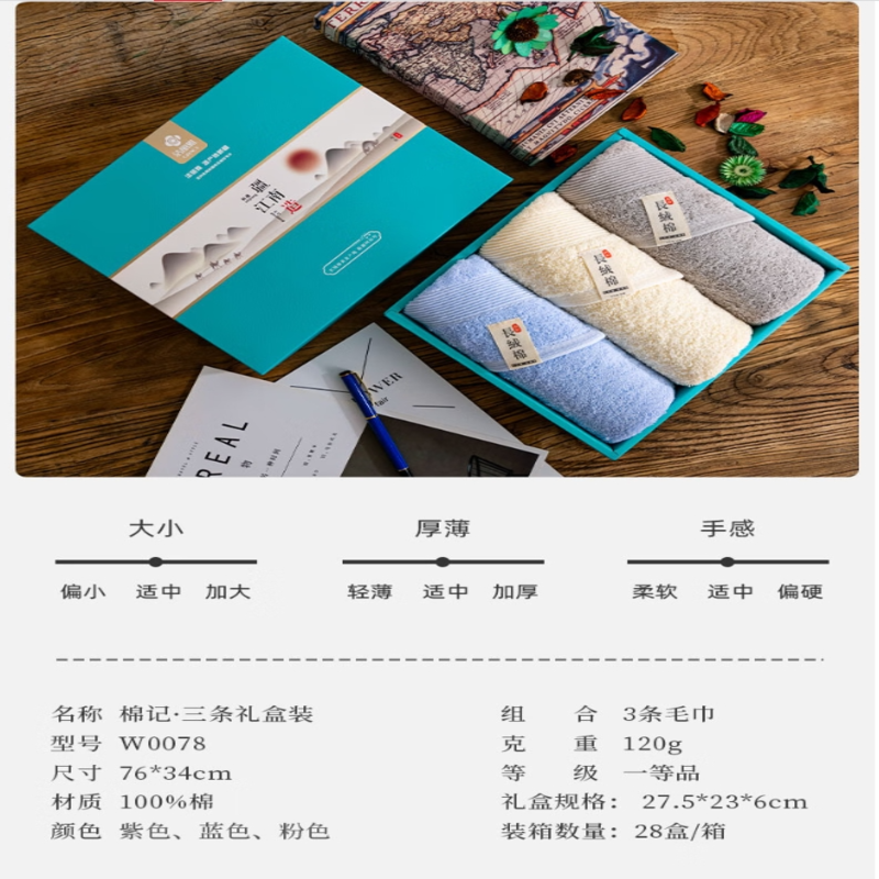 洁丽雅(Grace) 素艺毛巾三条礼盒装 W0078 76*34cm*3条 混色(单位:盒)