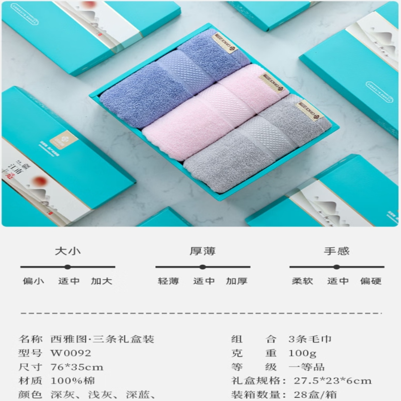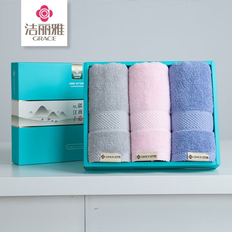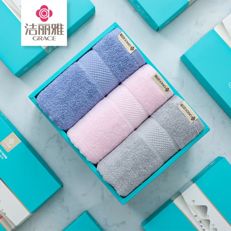 洁丽雅(Grace) 西雅图毛巾三条礼盒装 W0092 76*35cm*3条 混色(单位:盒)