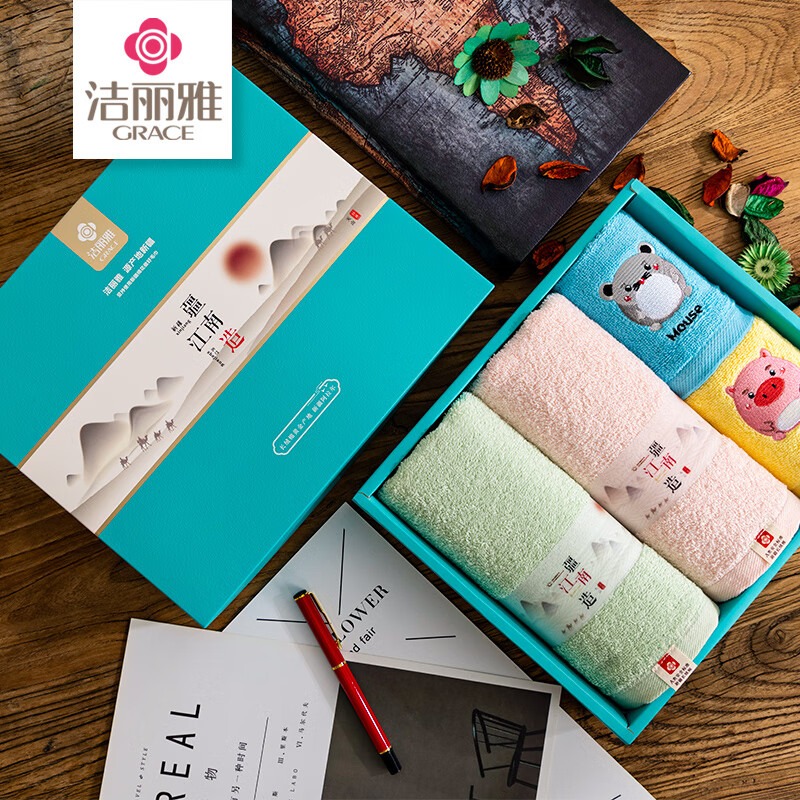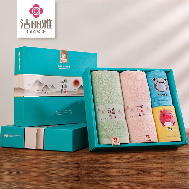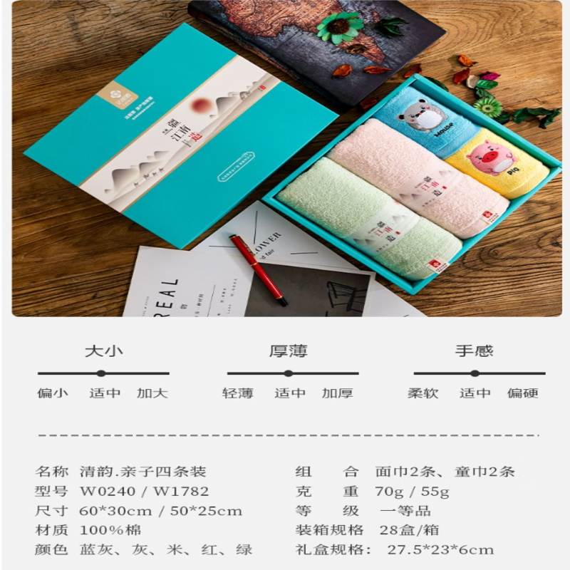 洁丽雅(Grace) 清韵毛巾亲子装礼盒 W0240+W1782 四件礼盒装 混色(单位:盒)