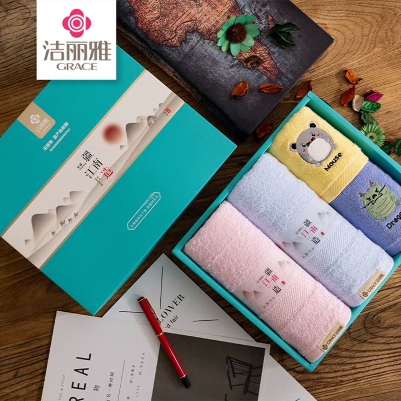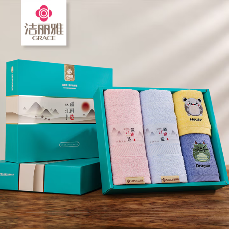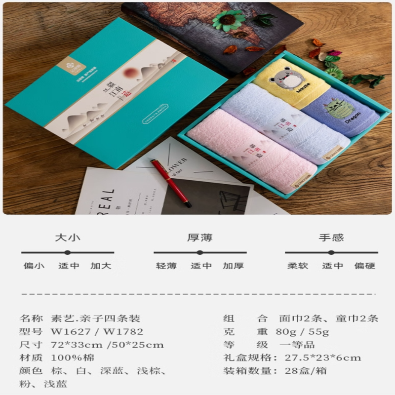 洁丽雅(Grace) 素艺毛巾亲子装礼盒 W1627+ W1782 四件礼盒装 混色(单位:盒)