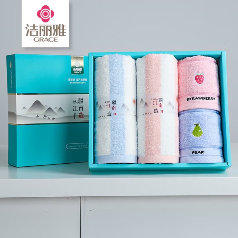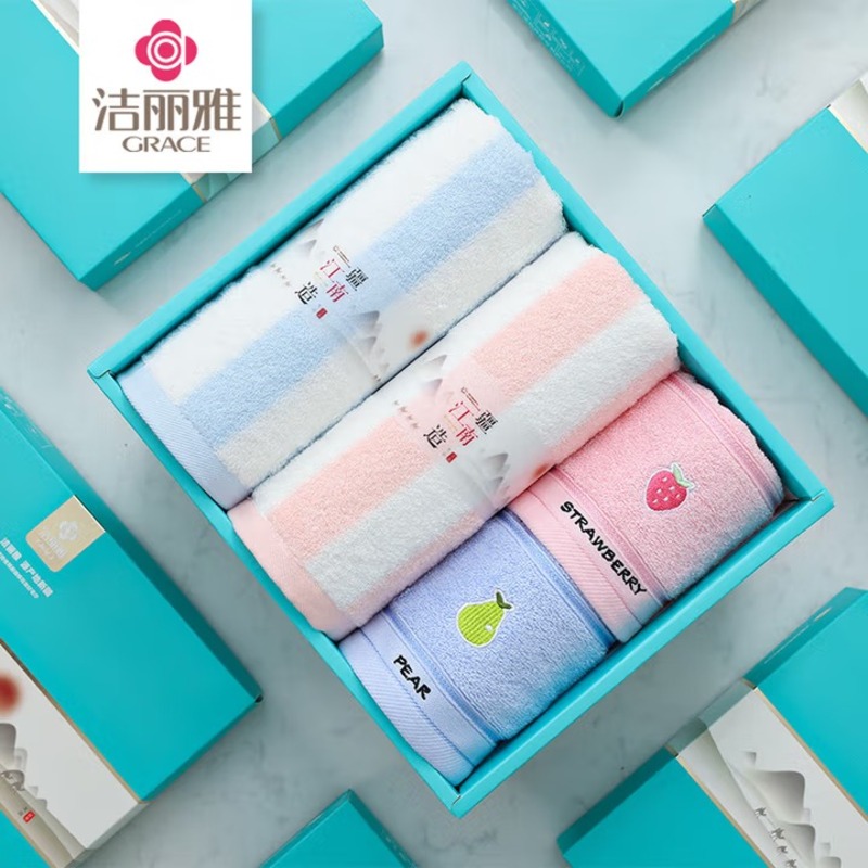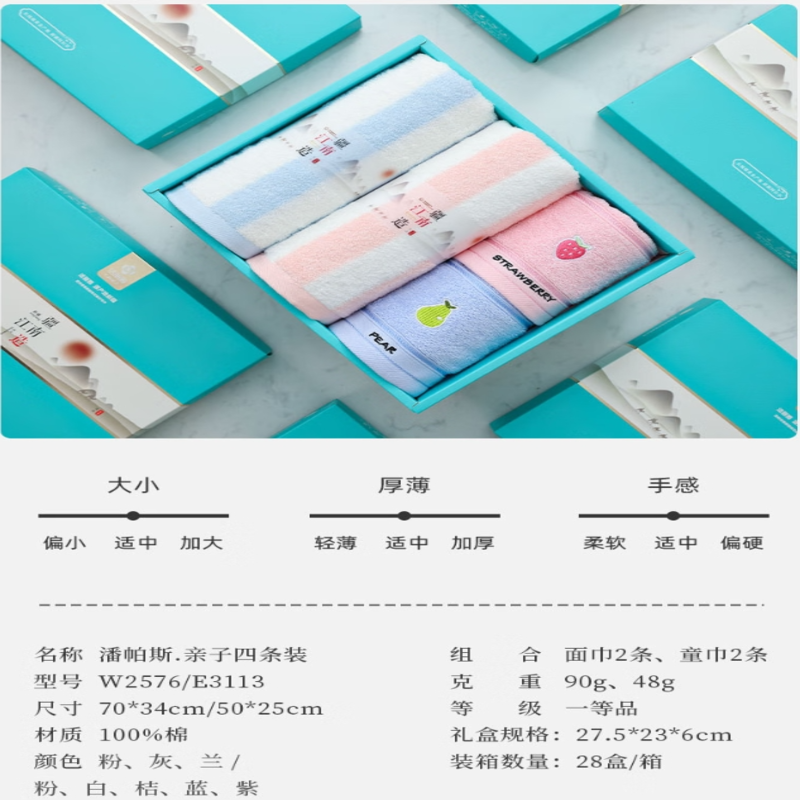 洁丽雅(Grace) 潘帕斯毛巾亲子装礼盒 W2576+E3113 四件礼盒装 混色(单位:盒)