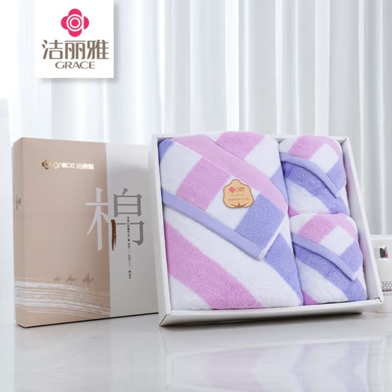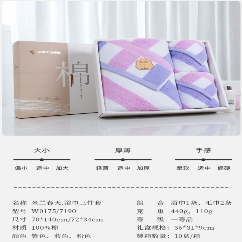 洁丽雅(Grace) 米兰春天毛巾浴巾组合 W0175+7190 三件套 混色(单位:盒)