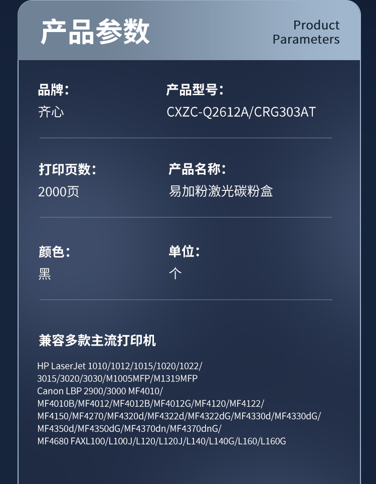 齐心(COMIX) 易加粉激光碳粉盒 CXZC-Q2612AT/CRG30 2000页 黑色(单位:个)